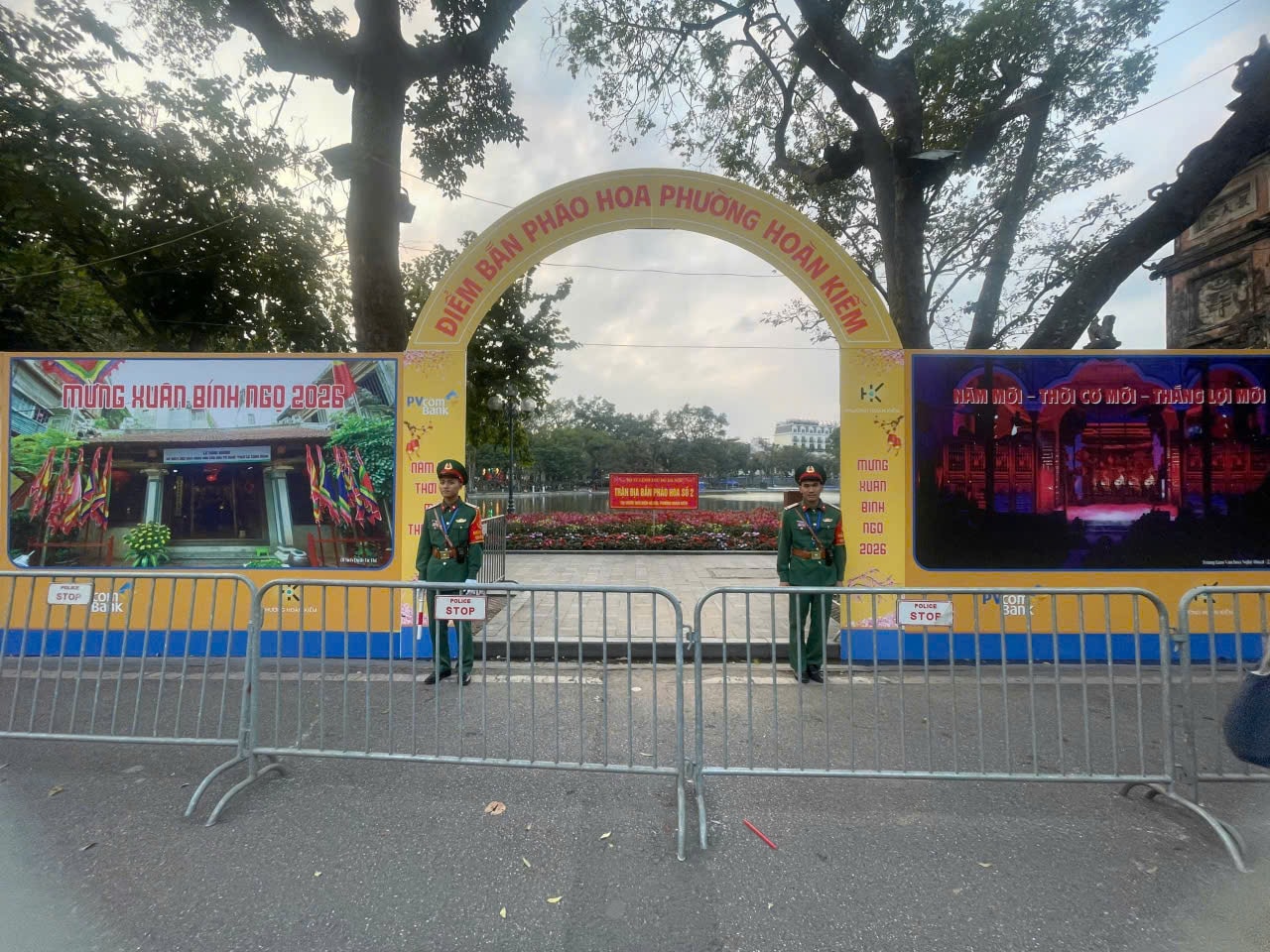 Bảo vệ nghiêm ngặt tại trận địa pháo hoa phường Hoàn Kiếm. Ảnh: Hiền Phương.