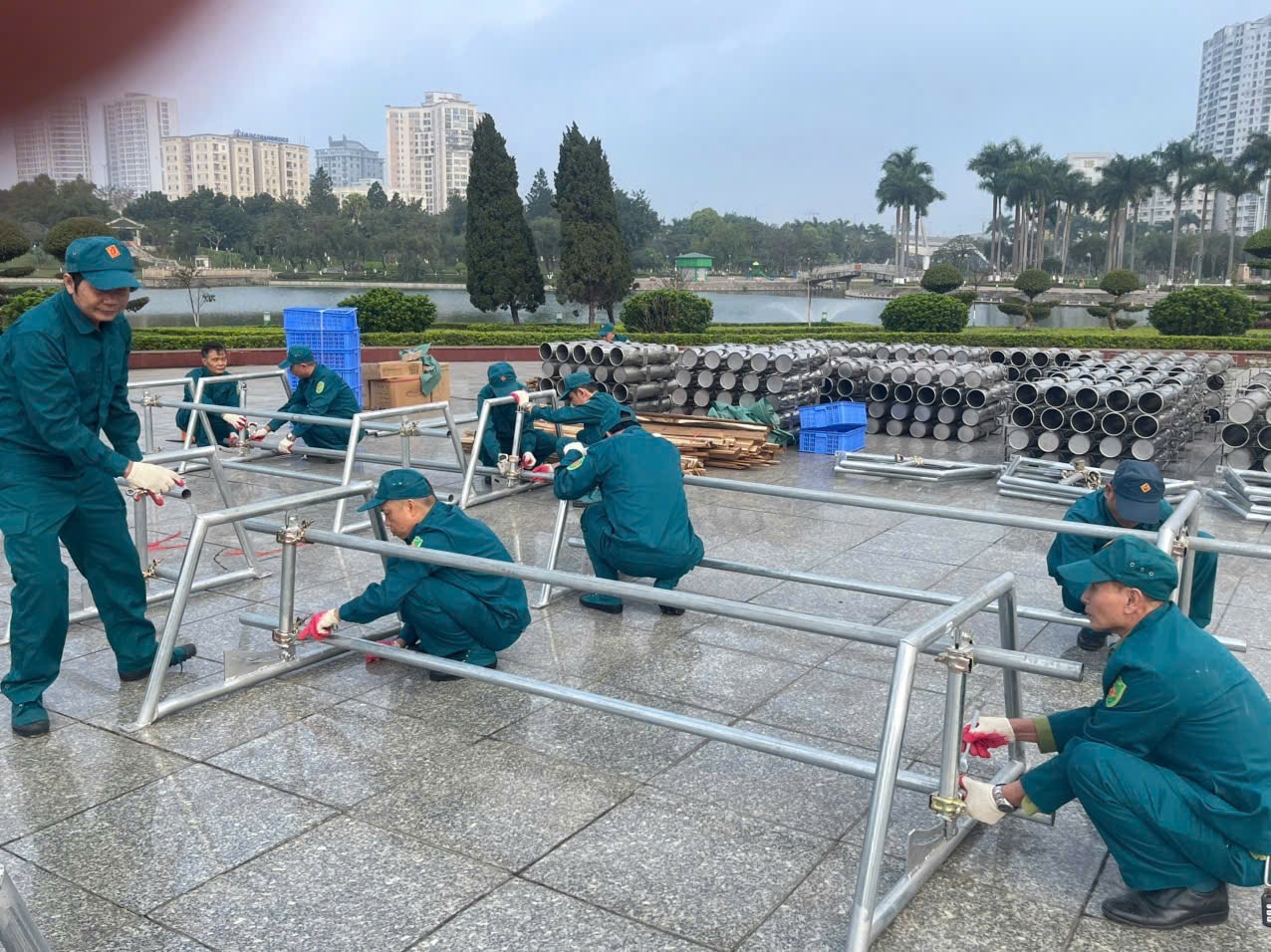 Tại khu vực Hồ Hoàn Kiếm - điểm bắn trung tâm, thu hút sự quan tâm đặc biệt của người dân và du khách - những ống phóng đã được cố định chắc chắn, hệ thống dây dẫn và thiết bị kích nổ được kiểm tra nhiều vòng. Các giàn pháo hoa cũng đã được đưa vào vị trí, chờ lệnh khai hỏa. Vành đai an ninh quanh trận địa được thắt chặt, từng khâu nhỏ đều được giám sát nghiêm ngặt. Thượng tá Nguyễn Việt Hòa, Chỉ huy trưởng Ban Chỉ huy phòng thủ khu vực 3 - Hồng Hà - người trực tiếp chỉ huy trận địa Hồ Hoàn Kiếm cho biết: “Để thực hiện nhiệm vụ quan trọng này, đơn vị đã huy động lực lượng làm việc liên tục trong nhiều ngày. Các công đoạn như lắp đặt giàn bắn, đấu nối thiết bị đến kiểm tra an toàn… đều được thực hiện đúng tiêu chuẩn kỹ thuật. Đến thời điểm này, toàn bộ công tác chuẩn bị đã hoàn tất, lực lượng sẵn sàng cao nhất”.