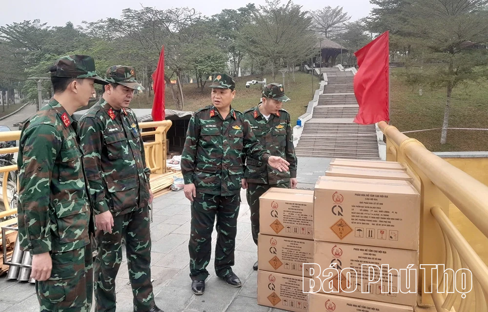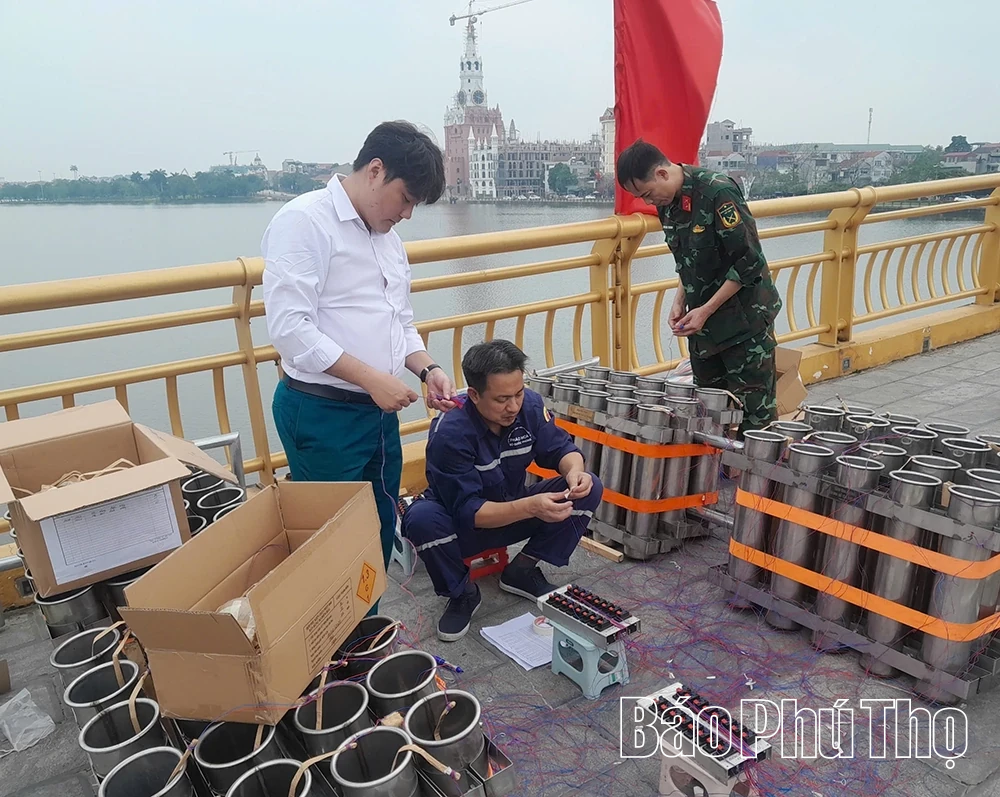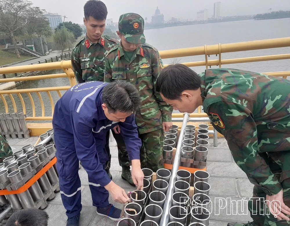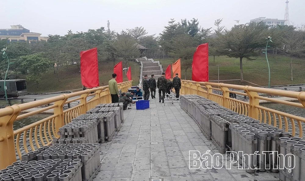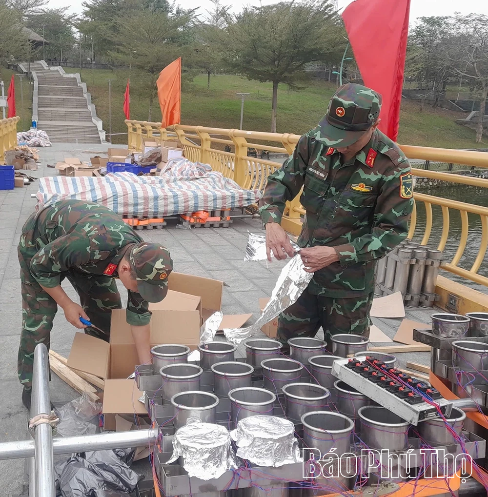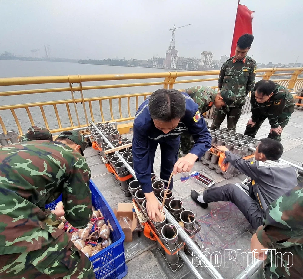 Ghi nhận tại trận địa pháo hoa trên cầu đi bộ - Công viên Văn Lang, phường Việt Trì, từ sáng 15/2, hàng chục cán bộ, chiến sĩ Đại đội Công binh, Bộ Chỉ huy Quân sự tỉnh; Ban CHQS phường Việt Trì, lực lượng dân quân cùng cán bộ kỹ thuật Nhà máy Z121 (Bộ Quốc phòng) đã khẩn trương triển khai lắp đặt hệ thống pháo hoa. Đến sáng 16/2, công tác lắp đặt cơ bản hoàn tất. Toàn bộ hệ thống pháo hoa được kiểm tra kỹ lưỡng, tuân thủ nghiêm ngặt các quy định về an toàn trước khi đưa vào vận hành.