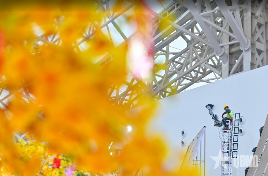 Đại diện Ban tổ chức cho biết, ngay sau khi hoàn tất công tác mặt bằng, các đội thi công đã triển khai theo phương án “cuốn chiếu”, vừa lắp dựng khung gian hàng, vừa hoàn thiện hệ thống kỹ thuật nhằm tiết kiệm thời gian nhưng vẫn bảo đảm an toàn lao động và chất lượng công trình. Tiến độ được kiểm soát chặt chẽ theo từng giờ, từng hạng mục cụ thể, bảo đảm toàn bộ công trình sẽ hoàn thiện trước ngày 2-2.