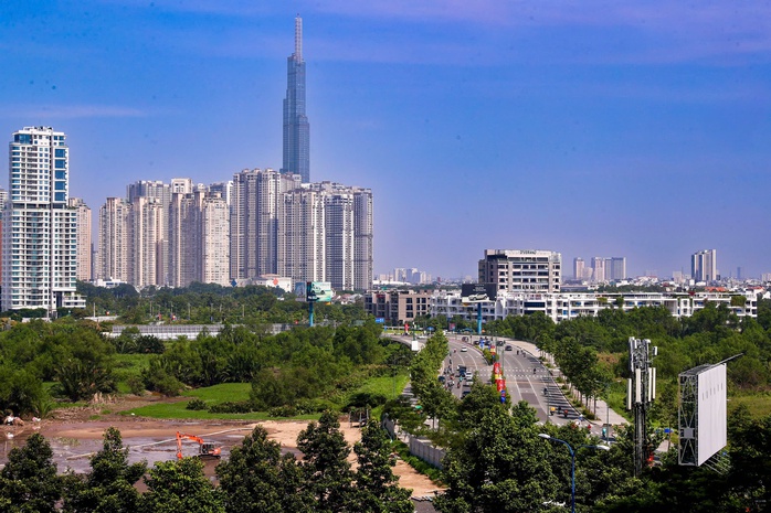 Trung tâm tài chính quốc tế tại TP HCM được xác định có diện tích khoảng 900 ha, trong đó một phần diện tích thuộc phường An Khánh (khu vực phía bên kia sông Sài Gòn, khu đô thị mới Thủ Thiêm) Ảnh: HOÀNG TRIỀU
