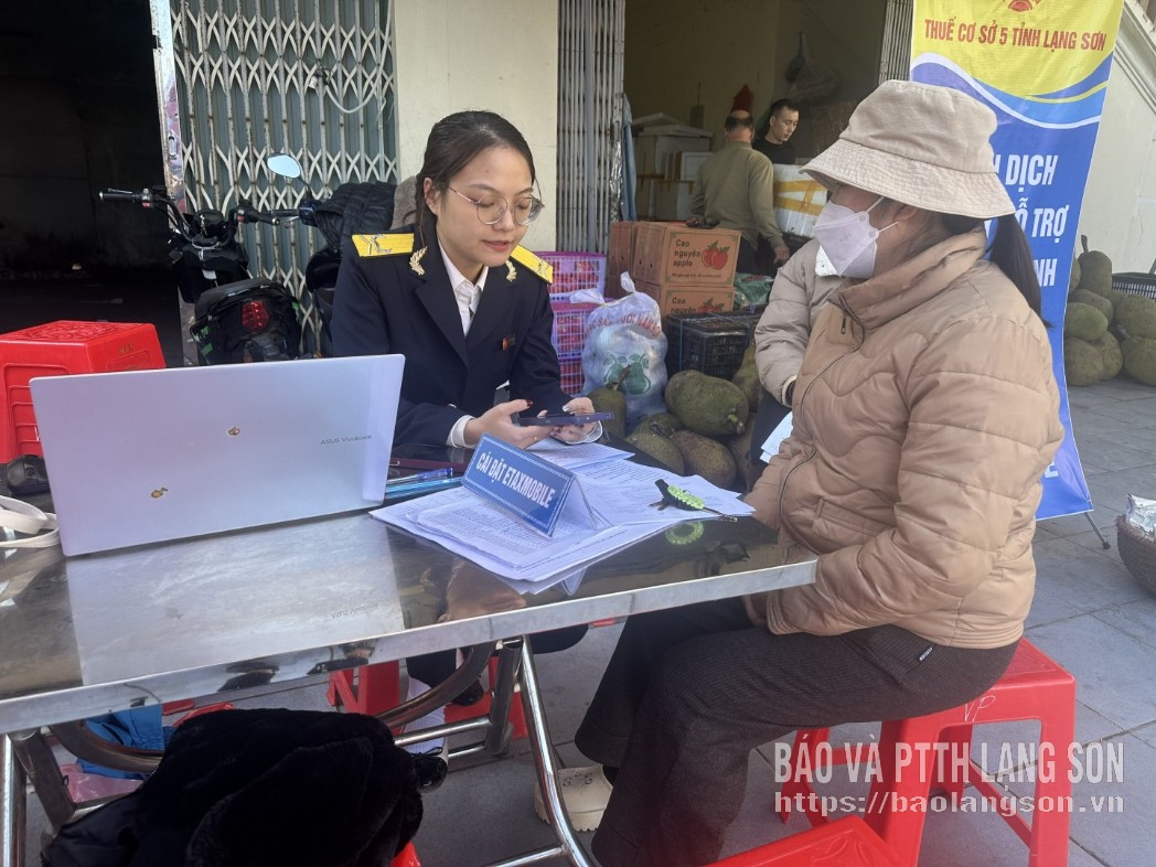 Từ sự chỉ đạo sát sao của Thuế tỉnh, các thuế cơ sở trên địa bàn nhanh chóng bắt tay vào triển khai các nội dung công việc cụ thể. Ông Nguyễn Tuấn Anh, Trưởng Thuế cơ sở 5 (phụ trách địa bàn 8 phường, xã thuộc thành phố Lạng Sơn và huyện Cao Lộc cũ) cho biết: Đến tháng 11/2025, đơn vị quản lý khoảng 6.800 HKD nộp thuế khoán. Ngay sau khi ban hành kế hoạch cũng như thành lập tổ công tác trực tiếp thực hiện việc chuyển đổi, Thuế cơ sở 5 đã phối hợp với các đơn vị cung cấp giải pháp và ngân hàng thương mại tổ chức ra quân tuyên truyền, hỗ trợ đồng loạt trực tiếp tại trụ sở HKD thuộc địa bàn quản lý. Trong đó trọng điểm là các khu vực chợ, trung tâm thương mại, trung tâm sản xuất, kinh doanh tập trung… Song song với tuyên truyền, hỗ trợ, đơn vị tiến hành khảo sát các nội dung đối HKD, từ đó nắm bắt đầy đủ thông tin để đưa ra giải pháp hỗ trợ phù hợp. Qua đó, đến cuối tháng 11/2025, Thuế cơ sở 5 là đơn vị hoàn hành việc tuyên truyền, hỗ trợ, khảo sát HKD sớm nhất trên địa bàn tỉnh.