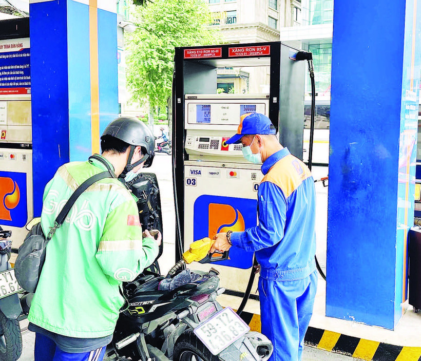 Người dân mua xăng sinh học E10 tại một điểm bán xăng dầu ở phường Xuân Hòa. (Ảnh HOÀNG LIÊM)