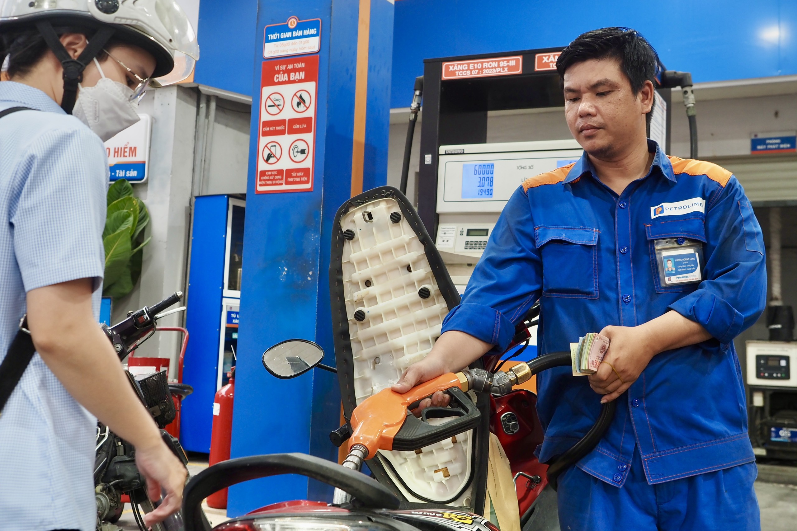 Người dân mua xăng E10 tại cửa hàng xăng Petrolimex trên đường Nguyễn Thị Minh Khai, phường Xuân Hòa, TPHCM. Ảnh: HOÀNG HÙNG