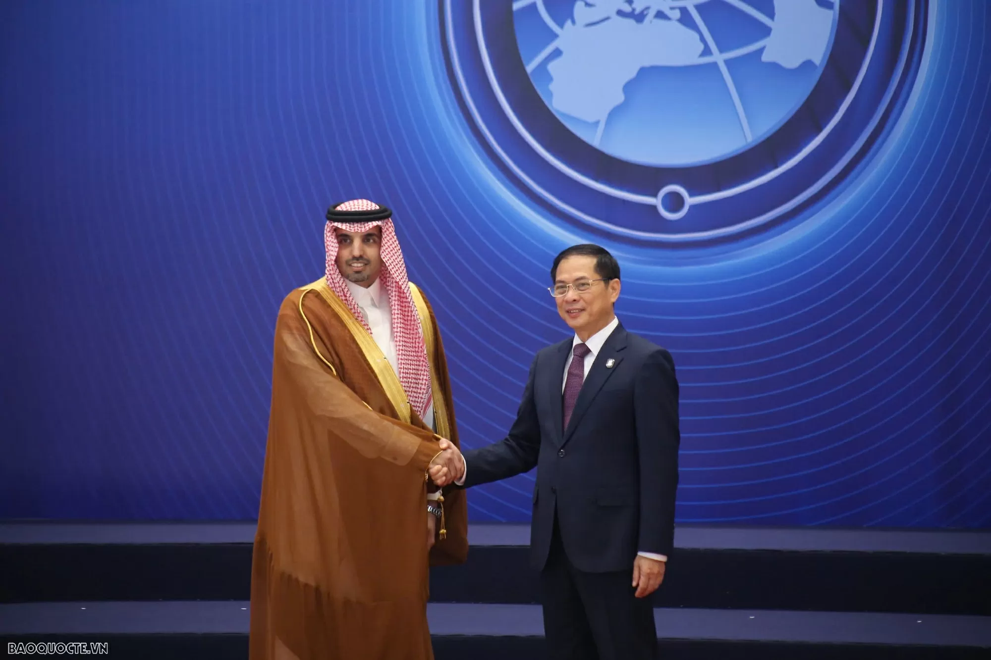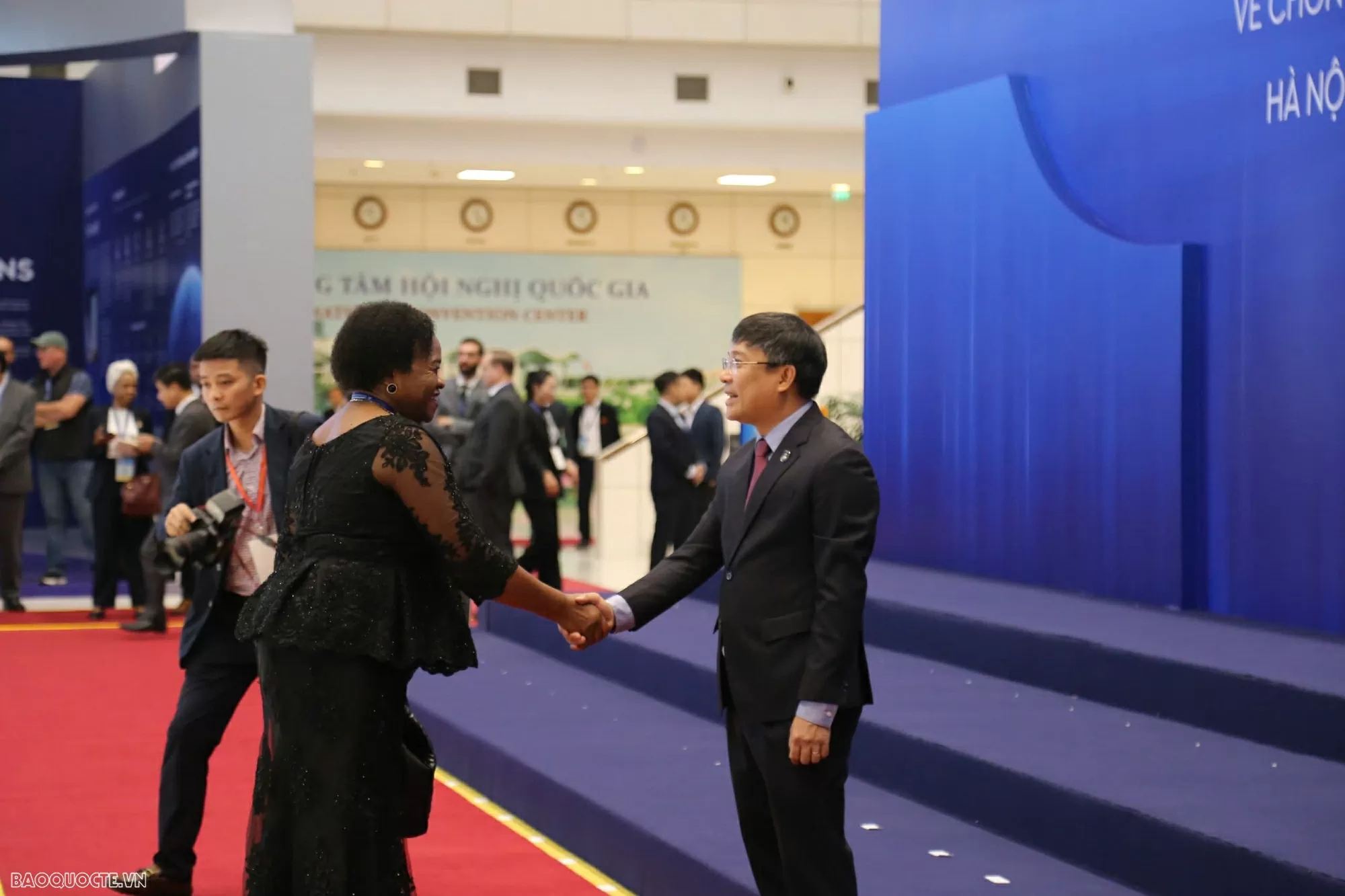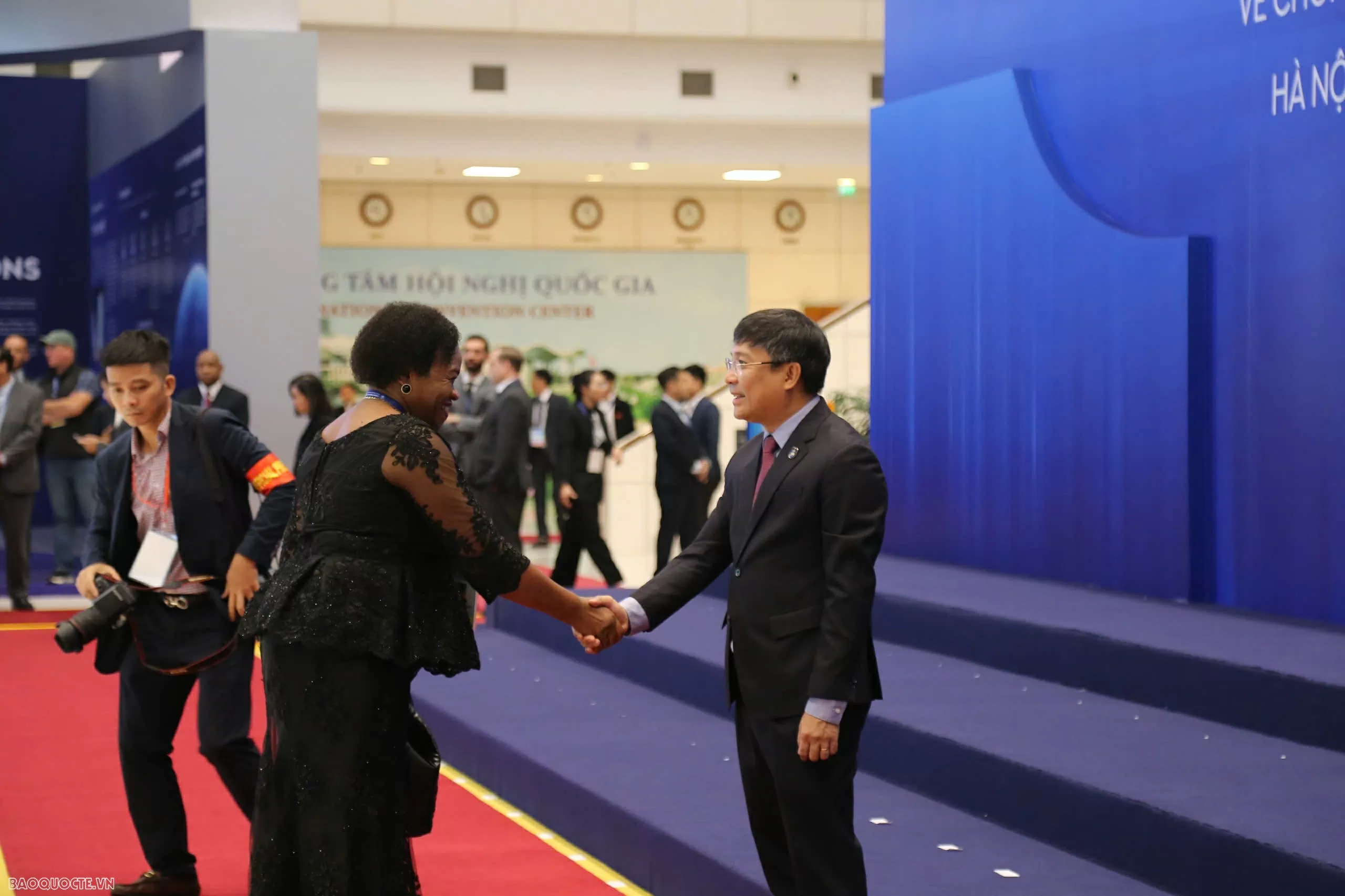 Phó Thủ tướng Chính phủ Bùi Thanh Sơn đón tiếp Bộ trưởng các nước đến tham dự Lễ mở ký Công ước Hà Nội.