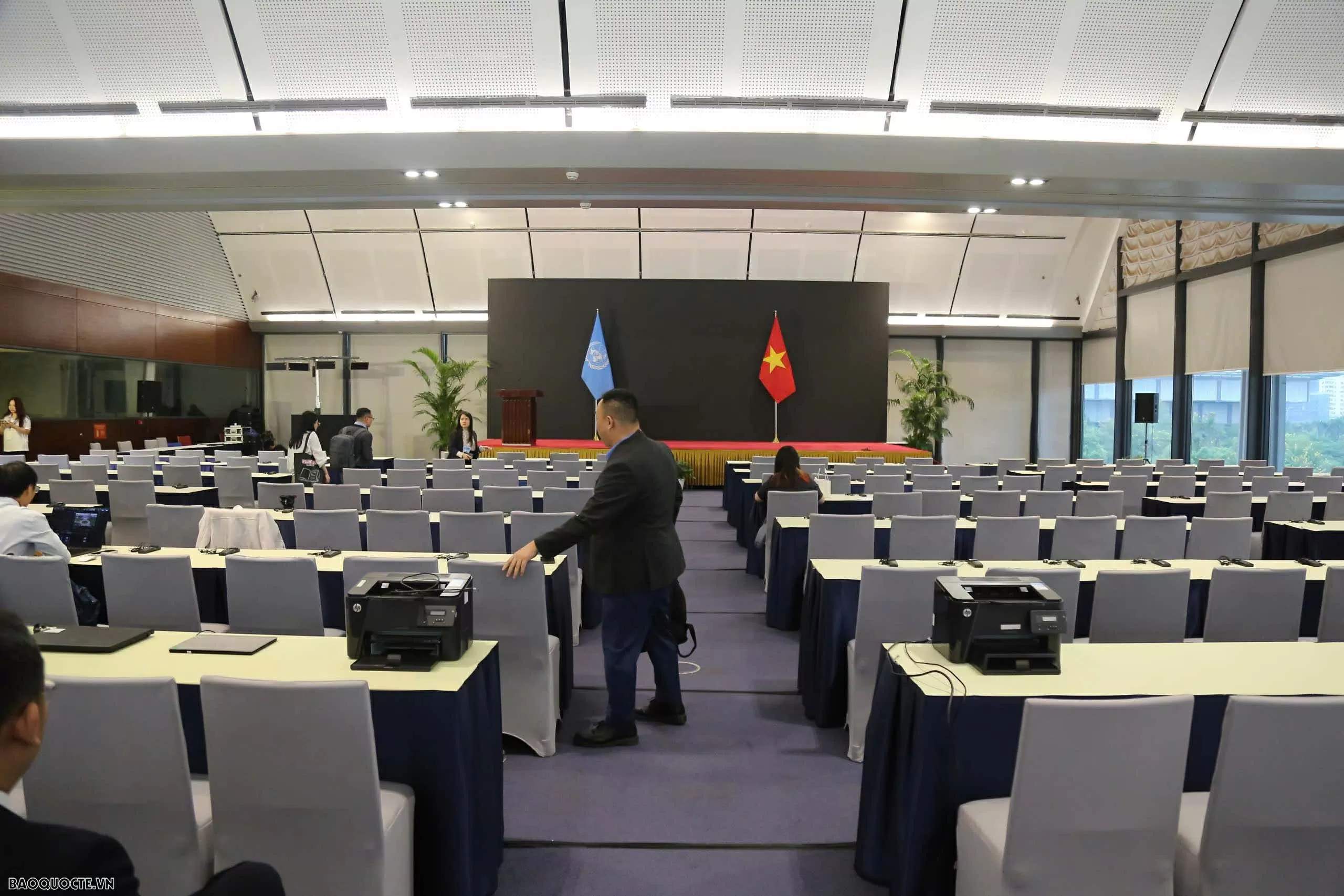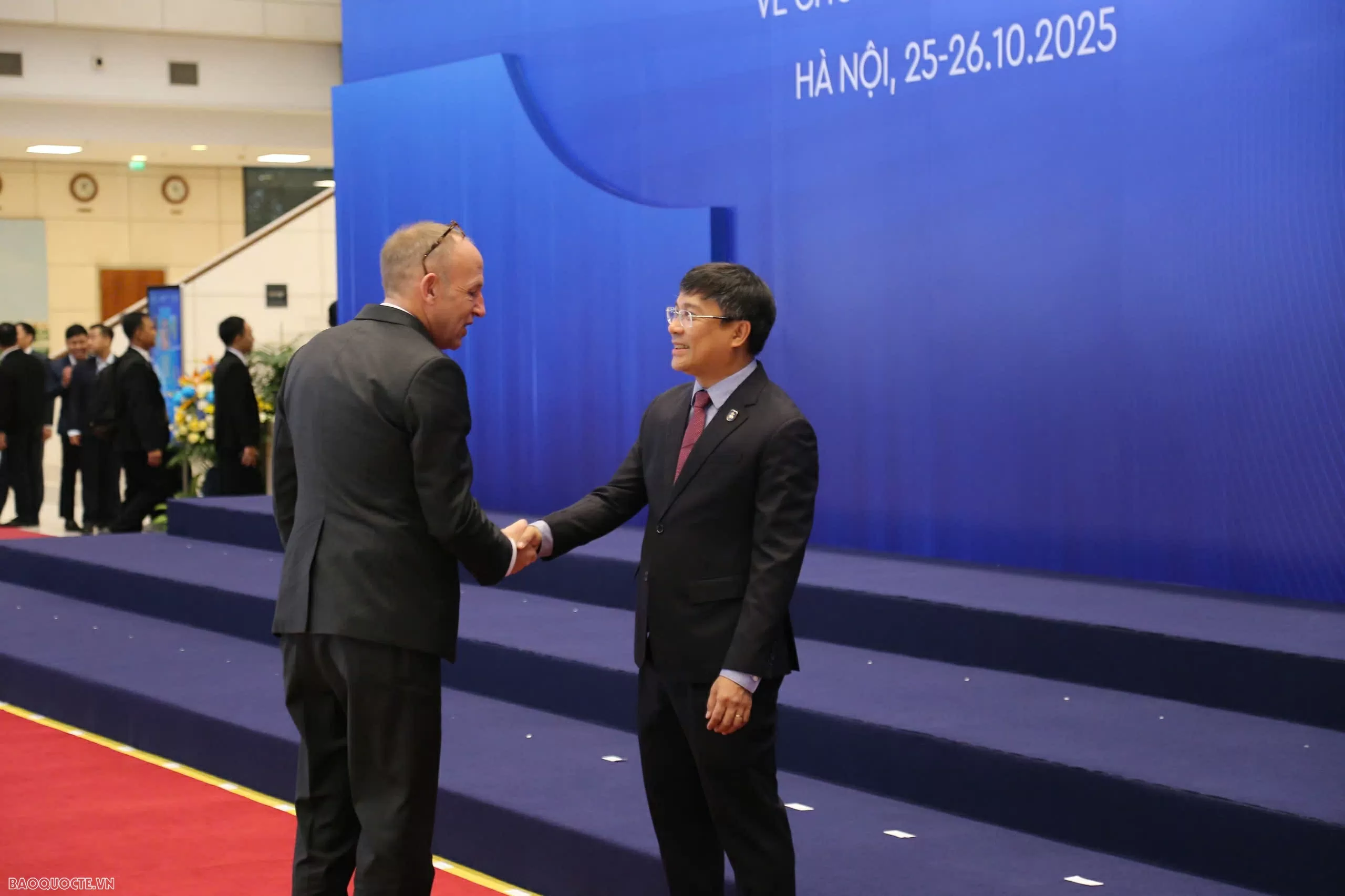 Thứ trưởng Thường trực Bộ Ngoại giao Nguyễn Minh Vũ cũng có mặt từ sớm đón tiếp các đại biểu.