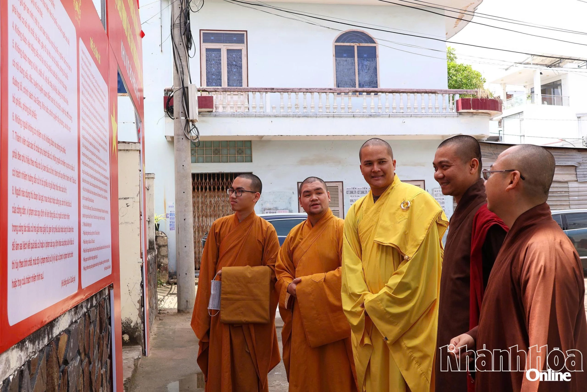 Các vị chức sắc, tăng ni chùa Pháp Sơn tìm hiểu nội quy bỏ phiếu và thể lệ bầu cử. Ảnh: Mã Phương