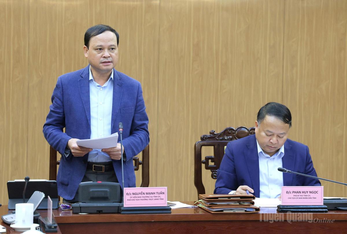 Phó Chủ tịch Thường trực UBND tỉnh Nguyễn Mạnh Tuấn phát biểu tại phiên họp.