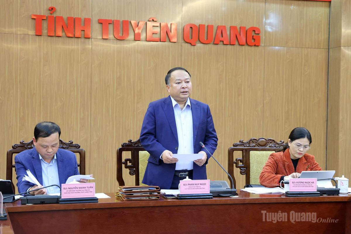 Phát biểu kết luận phiên họp, Chủ tịch UBND tỉnh Phan Huy Ngọc biểu dương tinh thần chủ động của các sở, ngành. Để hoàn thành thắng lợi các mục tiêu đề ra, đồng chí Phan Huy Ngọc yêu cầu: Các chủ đầu tư đôn đốc, đẩy nhanh tiến độ các công trình trọng điểm. Đẩy nhanh tiến độ nhưng tuyệt đối không được buông lỏng chất lượng. Đồng thời, yêu cầu ngành Tài chính sớm giải quyết các khó khăn, vướng mắc cho doanh nghiệp, đặc biệt là các dự án ngoài ngân sách để khơi thông nguồn lực. Về quy hoạch và quản lý tài sản, đồng chí Chủ tịch UBND tỉnh yêu cầu Công tác quy hoạch phải đảm bảo tạo không gian phát triển bền vững cho từng ngành, lĩnh vực; phát huy tối đa tiềm năng thế mạnh từng vùng. Đặc biệt, việc tính toán vị trí Trung tâm hành chính phải đảm bảo tính khoa học và phù hợp. Đối với trụ sở tài sản công dôi dư, Sở Tài chính cần phối hợp chặt chẽ với các đơn vị để có phương án xử lý dứt điểm, tránh lãng phí. Về công tác xã hội và an ninh, trước mắt là chuẩn bị cho Tết trồng cây, cần lựa chọn loại cây phù hợp với thổ nhưỡng, khí hậu địa phương và có giá trị kinh tế cao, đảm bảo buổi lễ diễn ra trang trọng, ý nghĩa và an toàn. Với các hoạt động vui Xuân, lễ hội phải giữ gìn được nét văn hóa truyền thống, đảm bảo an ninh trật tự để nhân dân hưởng trọn niềm vui. Đặc biệt, công tác giao - nhận quân phải được chuẩn bị chu đáo, đảm bảo an toàn tuyệt đối.