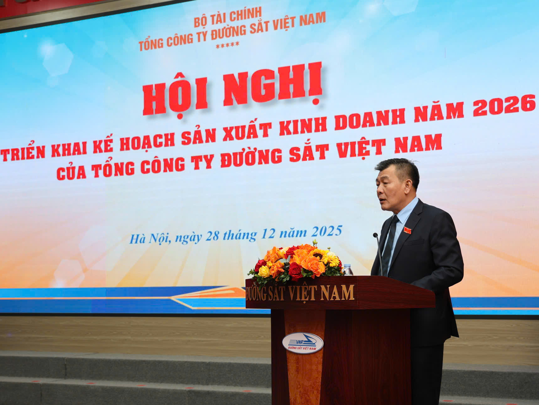 Phát biểu tại hội nghị, đồng chí Nguyễn Đức Phong, Phó bí thư Đảng ủy Chính phủ đề nghị, Tổng công ty cần tiếp tục duy trì và phát triển hiệu quả các sản phẩm, dịch vụ vận tải đang được hành khách và nhân dân ghi nhận, đánh giá cao, đồng thời nghiên cứu, cho ra các sản phẩm, dịch vụ độc đáo và có giá trị gia tăng cao. Đẩy mạnh vận tải liên vận quốc tế; khai thác hiệu quả tài sản kết cấu hạ tầng đường sắt; phấn đấu hoàn thành và vượt các chỉ tiêu kế hoạch năm 2026.