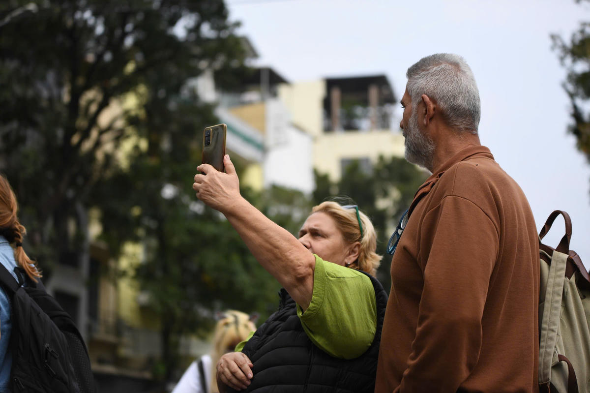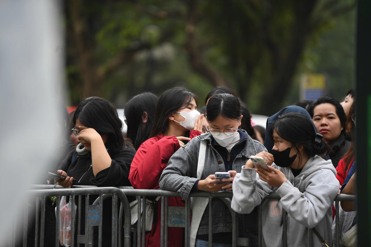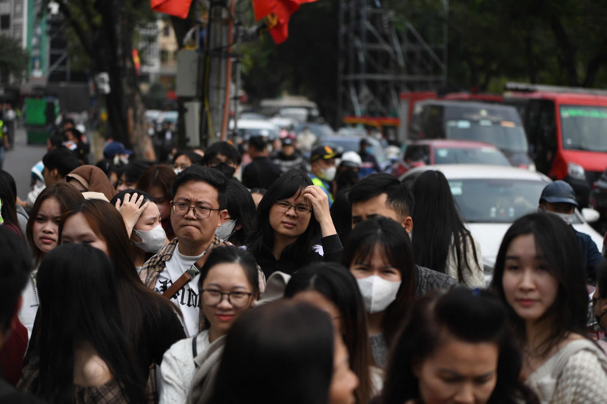 Lượng người đổ về khu vực trung tâm tăng nhanh. Xung quanh Gươm dần ken đặc người đi bộ, phần lớn là nhóm bạn trẻ và gia đình tranh thủ đến sớm để ghi lại những bức ảnh đầu tiên của ngày cuối năm. Ảnh: Phạm Sỹ.
