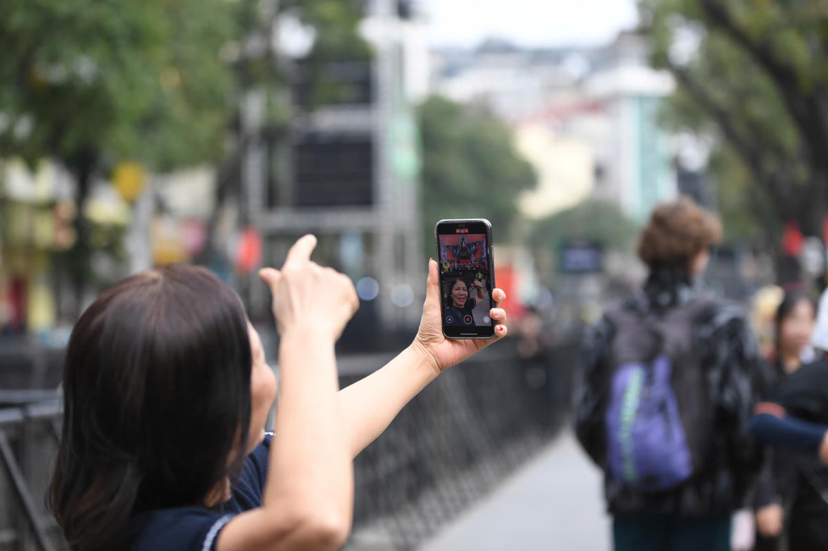 Không chỉ thu hút người dân Thủ đô, sự kiện Countdown còn hấp dẫn du khách quốc tế. Nhiều du khách nước ngoài cũng hòa mình vào dòng người với sự hứng khởi. Ảnh: Phạm Sỹ.