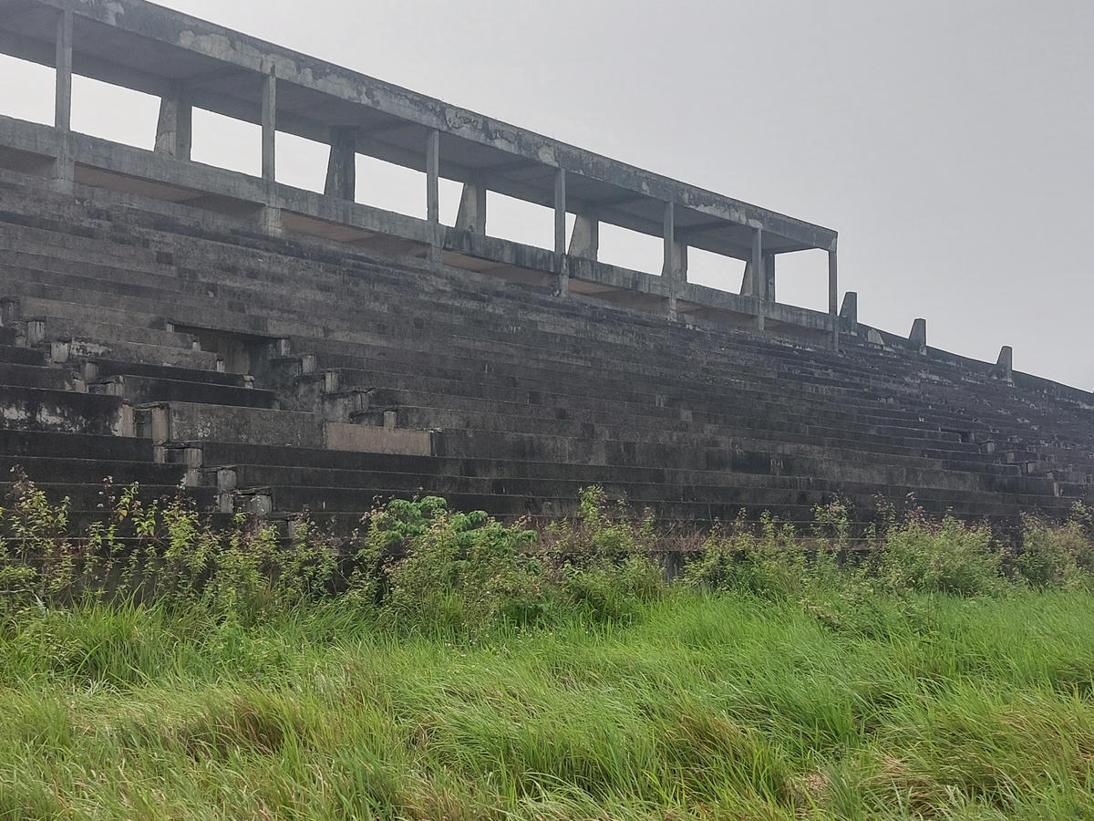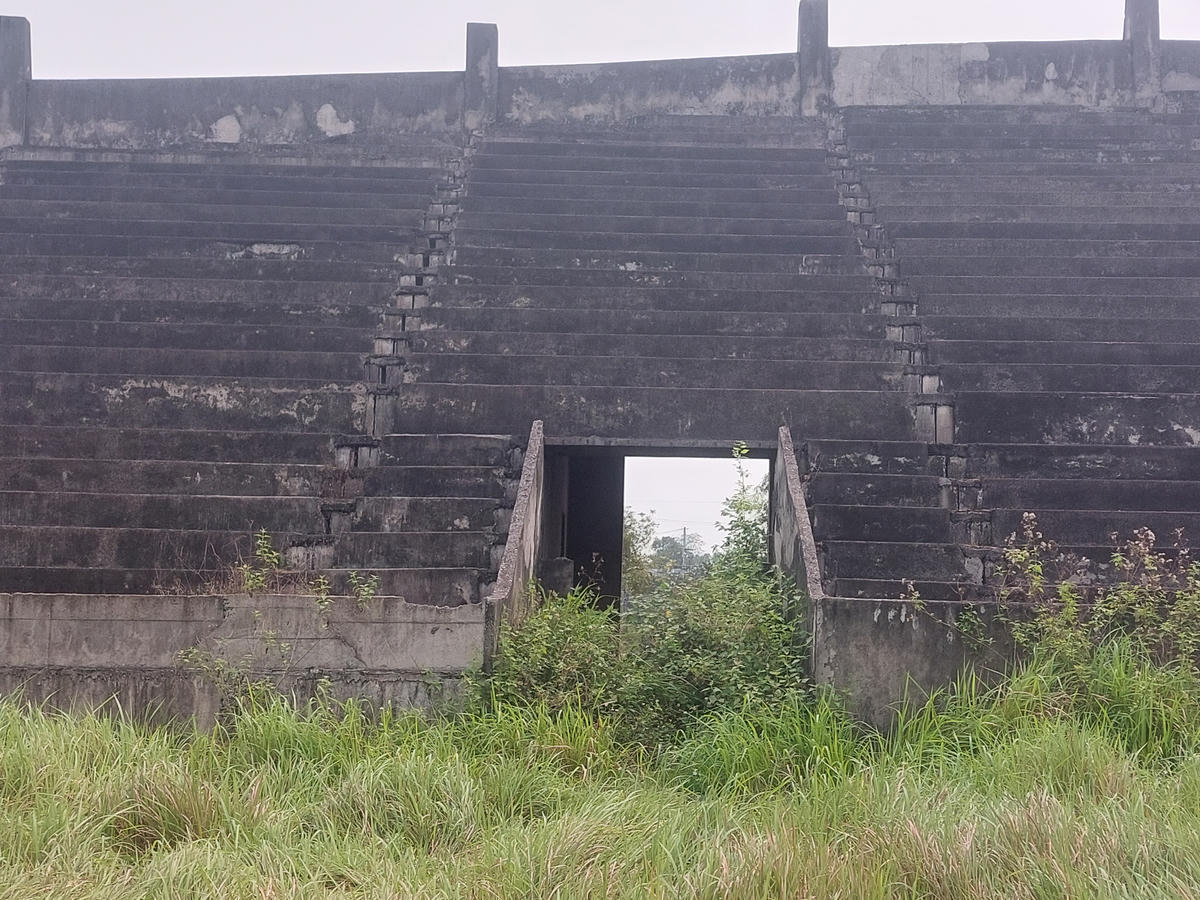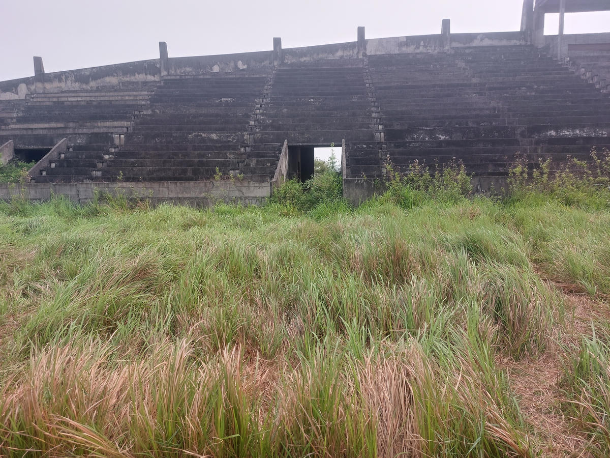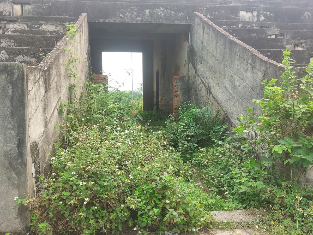Khán đài dang dở, bê tông phơi mưa nắng xuống cấp theo thời gian.