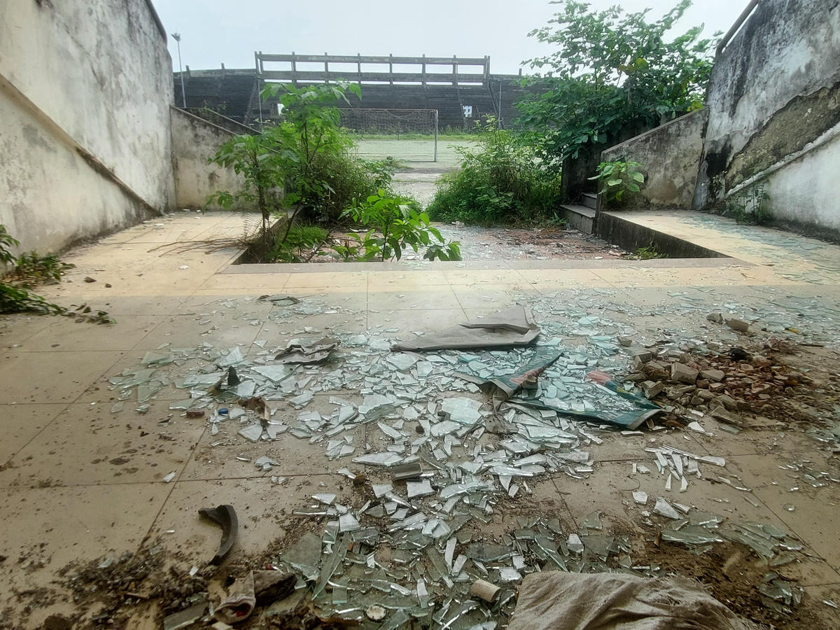Cỏ dại mọc khắp sân - nơi từng được kỳ vọng là Trung tâm Văn hóa - Thể thao của thành phố Việt Trì.