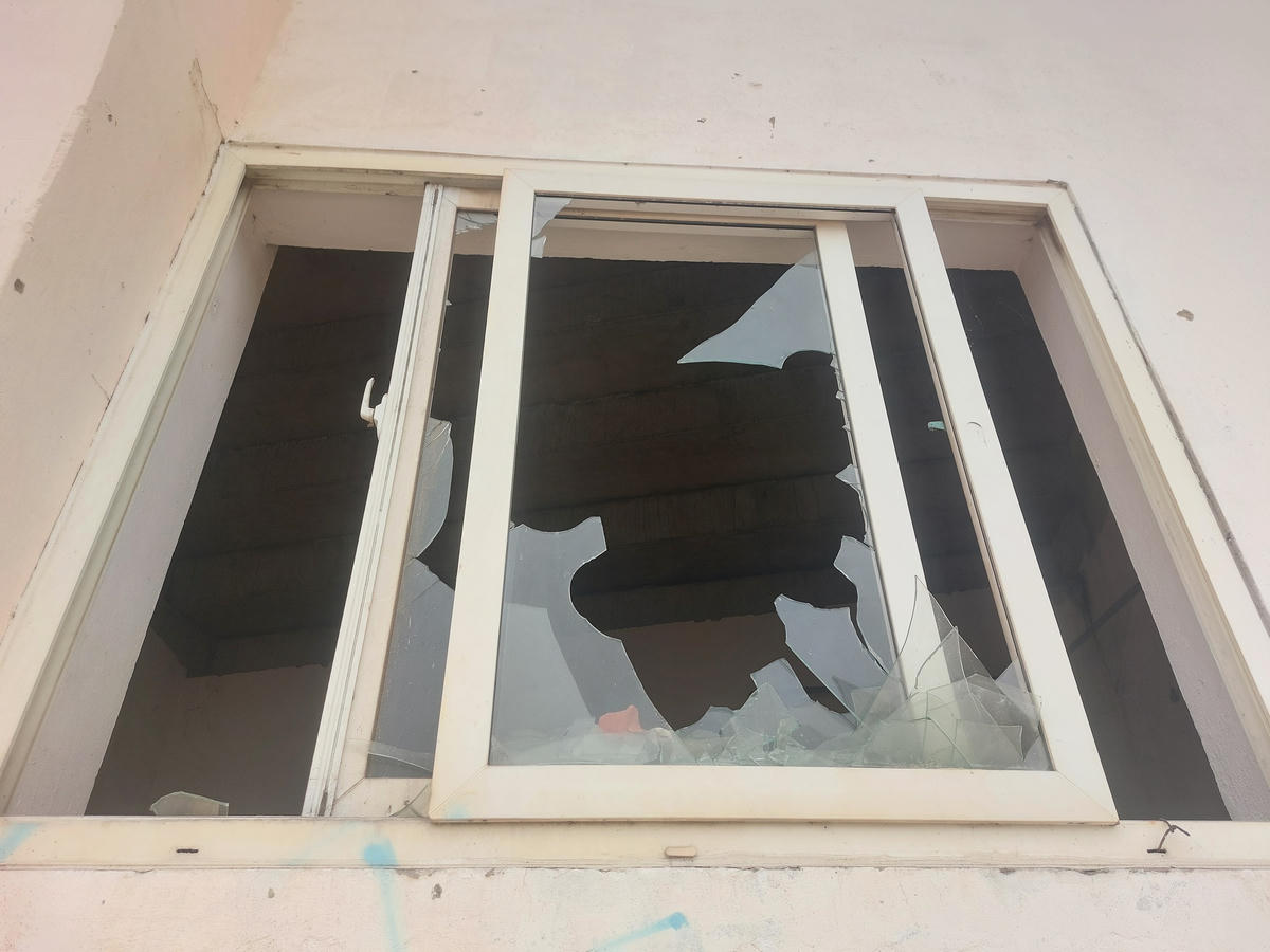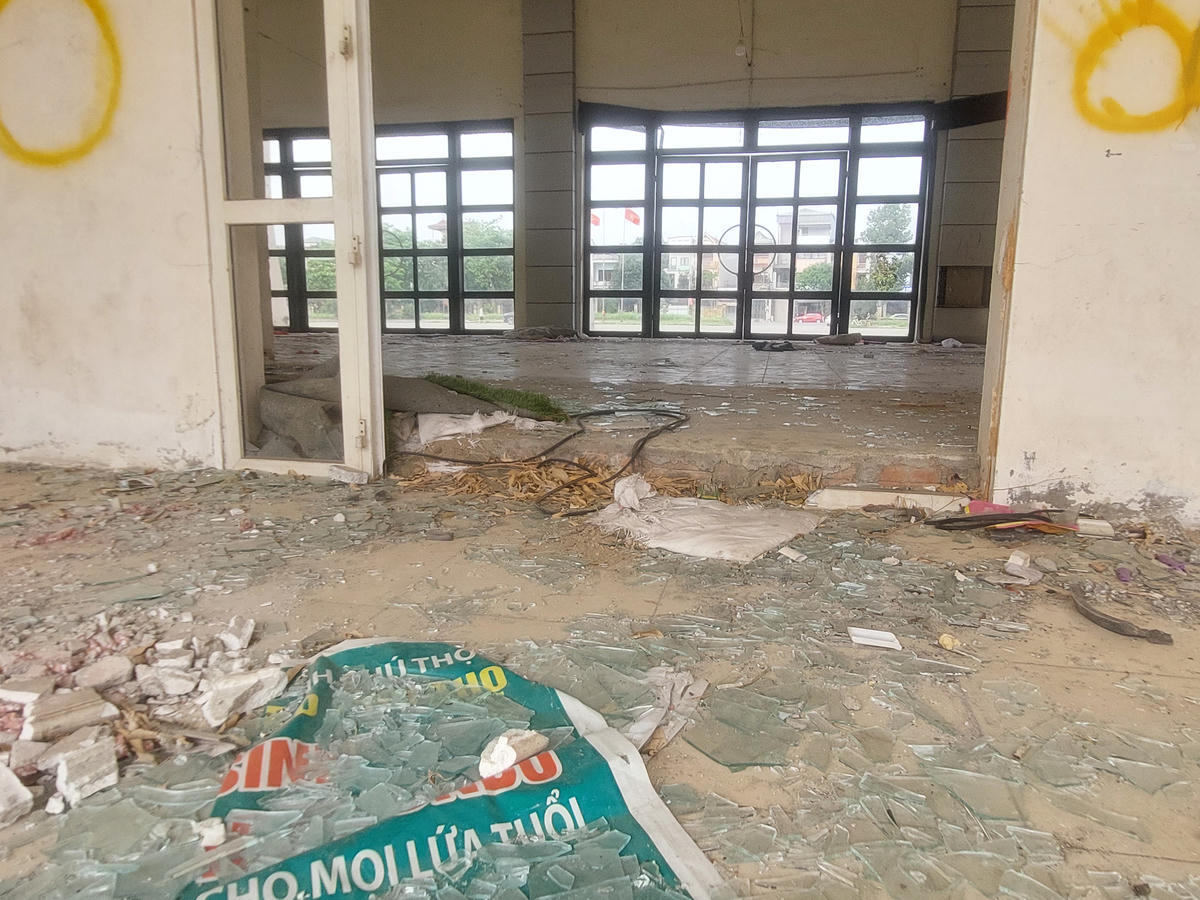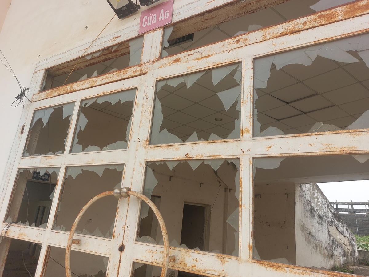Cửa kính vỡ vụn, vương vãi khắp nơi.