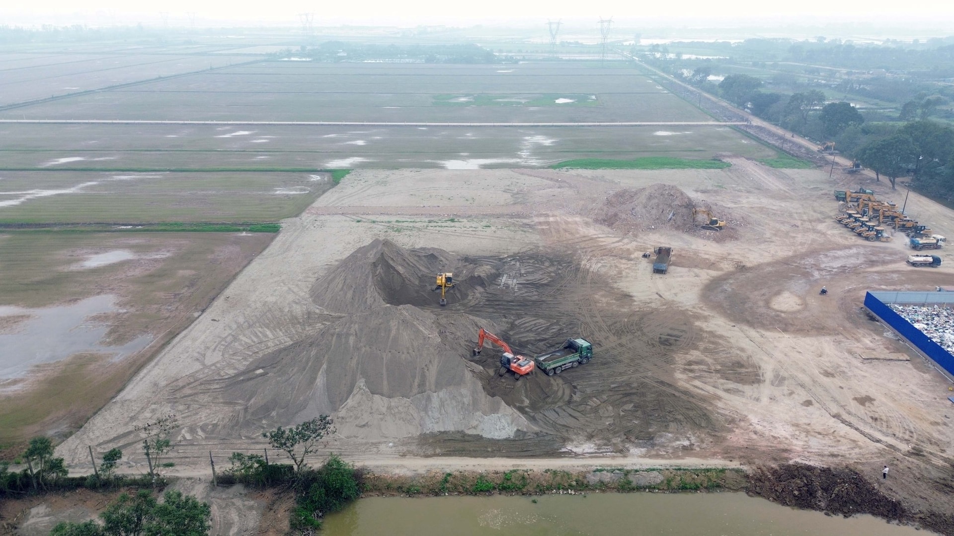 Từ đầu tháng 2/2026, dự án Khu đô thị thể thao Olympic tại xã Thượng Phúc (Hà Nội) đã có những chuyển động mới trên thực địa. Theo ghi nhận, đơn vị thi công đã bắt đầu tập kết hệ thống máy móc chuyên dụng và triển khai xây dựng đường công vụ để phục vụ việc xây dựng các hạng mục trọng điểm, đặc biệt là siêu công trình sân vận động Trống Đồng.