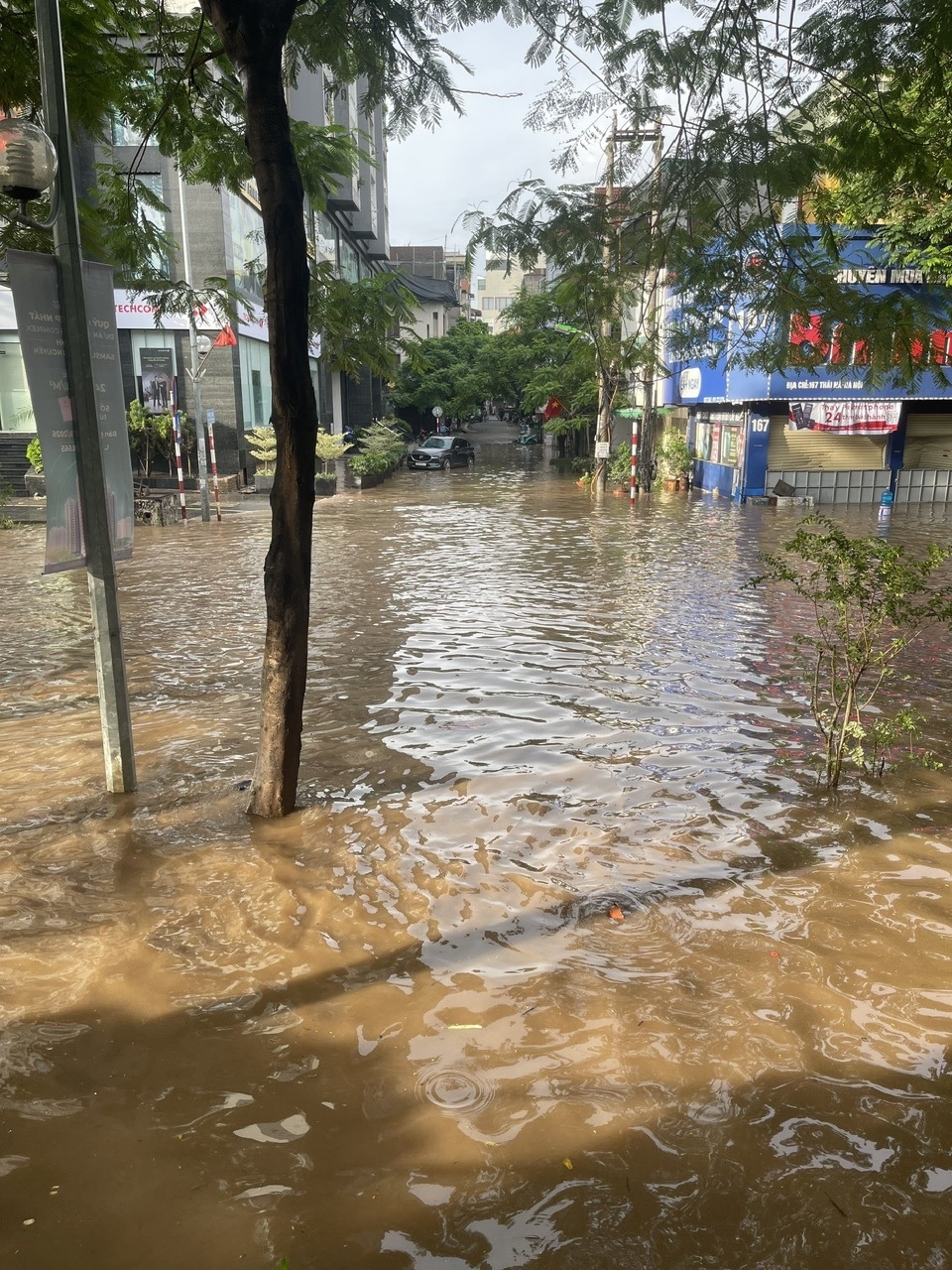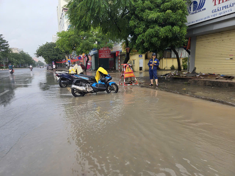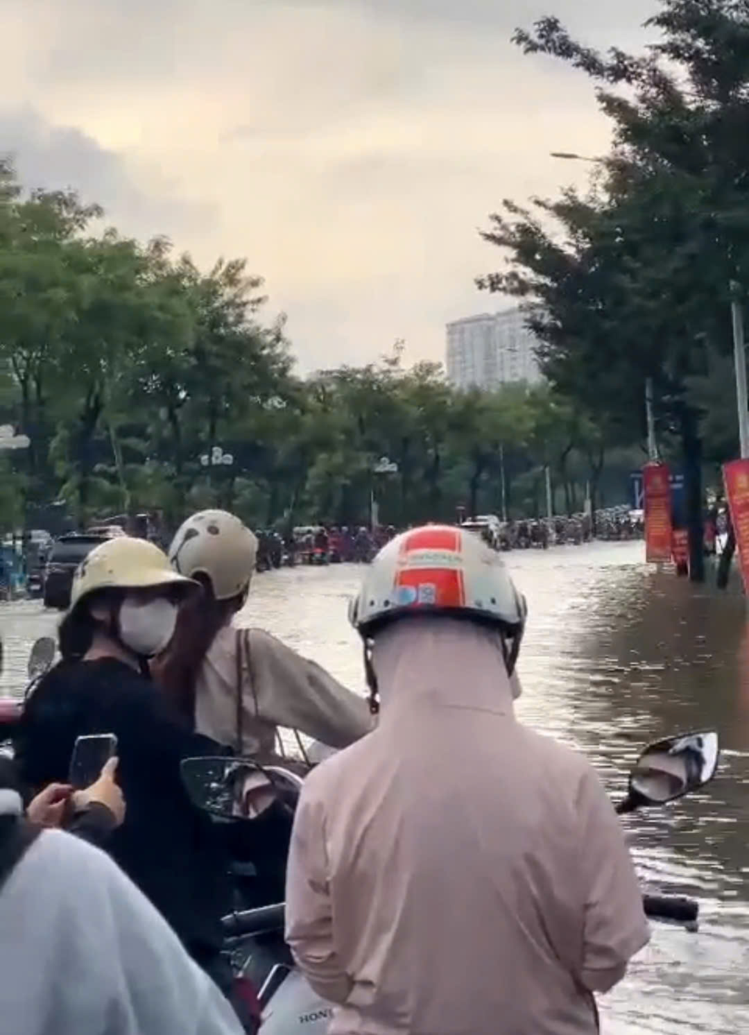Ngoài ra, tại một số tuyến như: Thái Hà, Tôn Thất Thuyết, Trịnh Văn Bô vẫn đang bị ngâp, người dân di chuyển khó khăn.