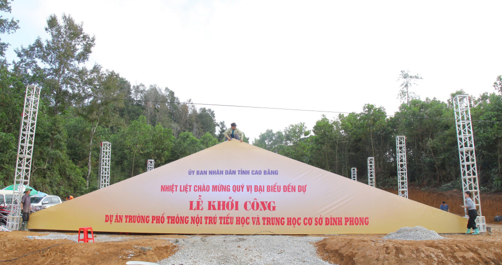 Tại Cao Bằng, điểm cầu chính tổ chức Lễ khởi công và kết nối truyền hình trực tiếp với Trung ương tại Trường phổ thông nội trú liên cấp Tiểu học và THCS xã Đình Phong. Hiện nay, công tác san gạt mặt bằng, dựng sân khấu, nhà bạt, hệ thống âm thanh, màn hình LED, trang trí khánh tiết đang được hoàn thiện, bảo đảm điều kiện tốt nhất về hình ảnh và tín hiệu kết nối với các điểm cầu trong cả nước.