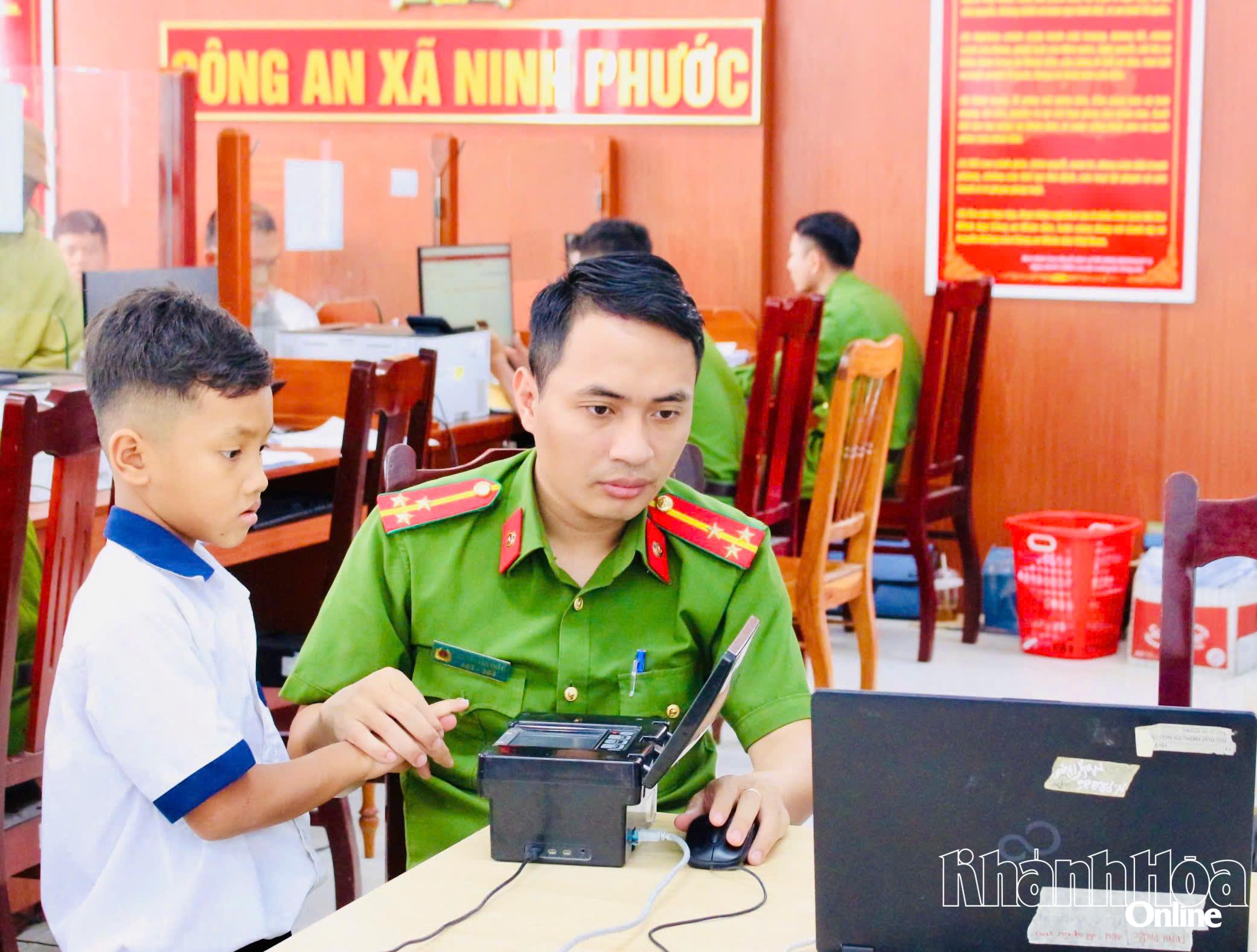 Thực hiện cao điểm cấp căn cước và định danh điện tử cho học sinh từ 6 đến 14 tuổi, nhất là các em sinh năm 2008, 2011 chuẩn bị bước vào kỳ thi năm 2026, Công an xã Ninh Phước chủ động xây dựng kế hoạch, phối hợp với nhà trường, thôn rà soát từng trường hợp để bố trí lực lượng theo từng tổ công tác cho phù hợp nhằm bảo đảm tiến độ và thuận tiện cho người dân. Theo đó, từ ngày 21-4 đến 7-5-2026, việc cấp căn cước và định danh điện tử được Công an xã duy trì liên tục với 3 khung giờ trong ngày: 7 giờ đến 11 giờ; 13 giờ 30 phút đến 17 giờ và 19 giờ đến 21 giờ. Đặc biệt, khung giờ buổi tối được tổ chức đều đặn các ngày trong tuần và thường bắt đầu sớm hơn từ 18 giờ để giúp phụ huynh đưa con em đến làm thủ tục mà không ảnh hưởng đến công việc.