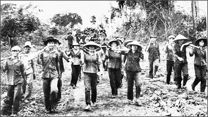 Thanh niên xung phong tại khu kinh tế mới Đất Sét trở về sau 1 ngày lao động (ảnh chụp năm 1976).