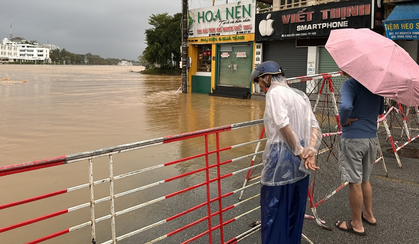 Lúc 5 giờ sáng 17/11, mực nước sông Hương tại Kim Long là 2,48m, trên báo động 2 là 0,48m; sông Bồ tại Phú Ốc là 4,79m, trên báo động 3 là 0,29m. Hiện tại mưa thượng nguồn lưu vực sông Hương đang có xu hướng giảm. Tuy nhiên, theo dự báo của Đài Khí tượng Thủy văn TP. Huế lượng mưa sẽ tăng trở lại trong trưa, chiều và đêm nay (17/11). Mực nước sông Hương sẽ lên trở lại, có khả năng xấp xỉ trên báo động 3 (báo động 3 sông Hương là 3,5m).