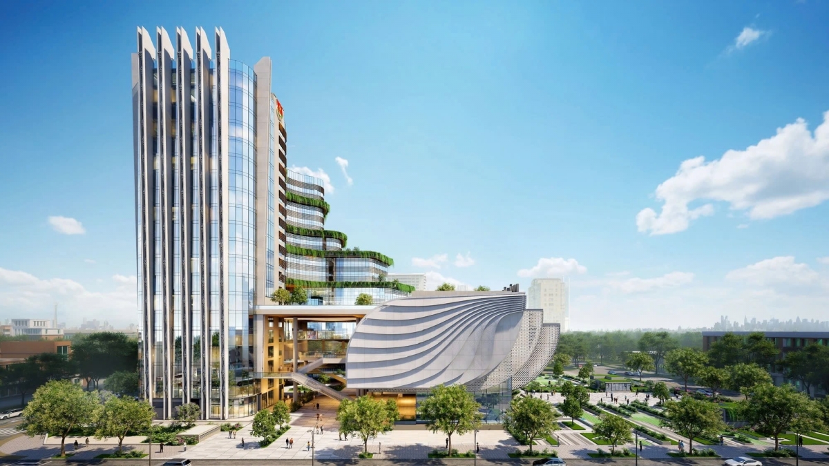 Công trình có quy mô 24 tầng, bao gồm khách sạn 4 sao đạt tiêu chuẩn quốc tế, không gian hội nghị, khu thương mại, không gian cộng đồng cùng hệ thống tiện ích đa năng, kỳ vọng sẽ trở thành điểm nhấn kiến trúc dịch vụ mới của đô thị Tây Ninh trong thời gian tới. (PV Nguyễn Quang - Nguyễn Tùng/VOV đưa tin)