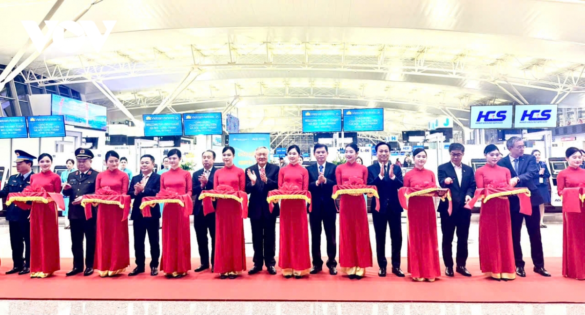 Sau khi cắt băng khánh thành dự án mở rộng Nhà ga T2 CHK Quốc tế Nội Bài, đoàn công tác của Chính phủ cùng Bộ Xậy dựng, Cục Hàng không Việt Nam đã lên chuyến bay đầu tiên, chặng bay Hà Nội – Long Thành. (PV Phi Long/VOV.VN đưa tin)