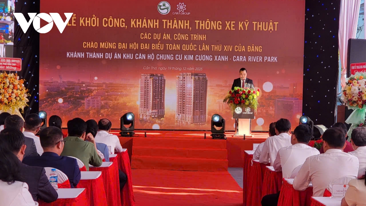 Sáng nay 19/12, thành phố Cần Thơ đã tổ chức Lễ khánh thành Dự án khu căn hộ chung cư Kim Cương Xanh - Cara River Park. Đây là một trong 7 dự án, công trình trọng điểm được thành phố Cần Thơ tổ chức khánh thành, khởi công trong sáng nay chào mừng Đại hội đại biểu toàn quốc lần thứ XIV của Đảng.