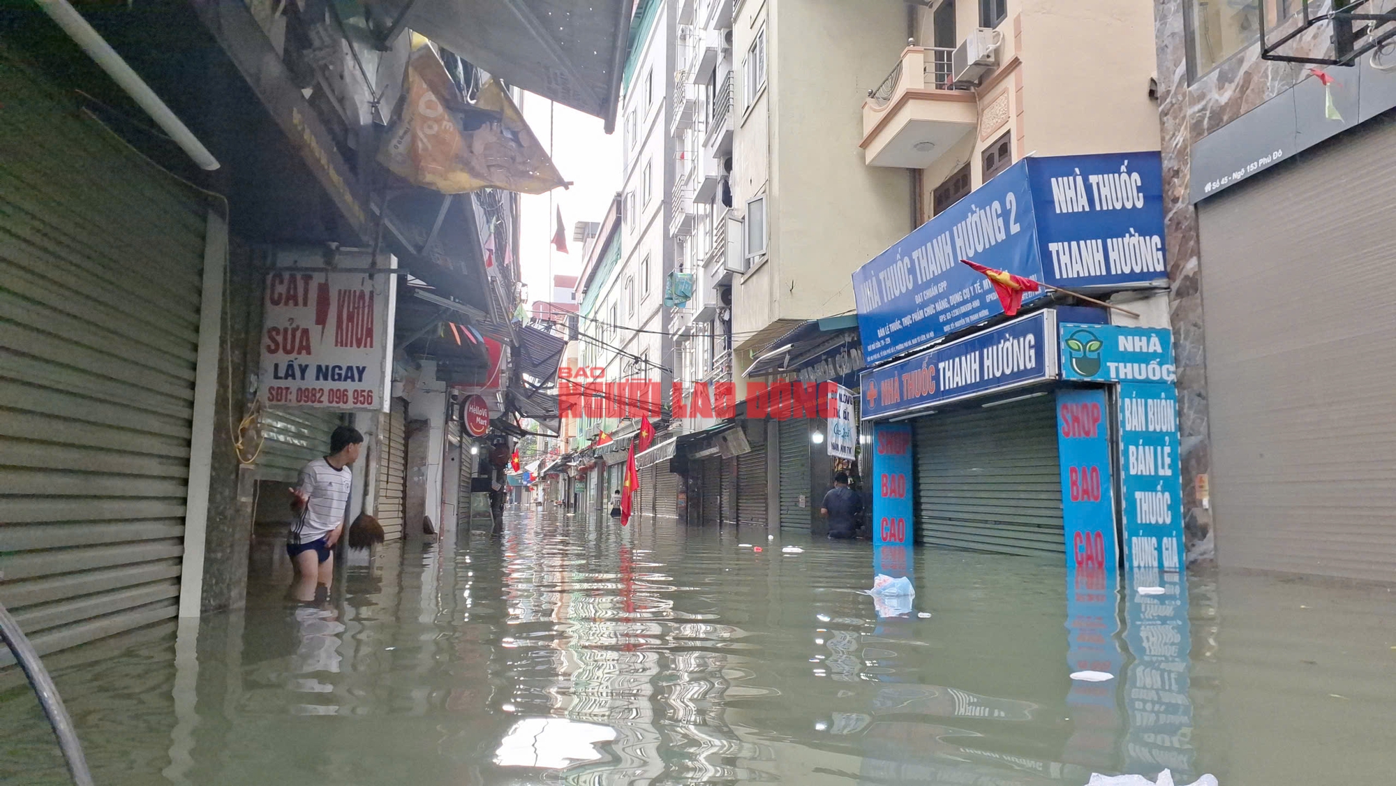 Cụ thể, tại khu vực sông Nhuệ còn úng ngập tại các đường, phố như: Lê Quang Đạo, Trần Bình, Phạm Văn Bạch, Dương Đình Nghệ, Hoa Bằng, Phan Văn Trường, khu Resco, Võ Chí Công, Phúc Xá, hầm chui Đại lộ Thăng Long số 5 và 6, ngã ba Tổng cục V, cầu Bươu, Triều Khúc, Yên Nghĩa, Quyết Thắng,...