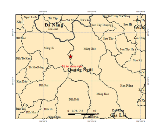 Trung tâm Báo tin động đất và Cảnh báo sóng thần, Viện Các khoa học Trái đất, vừa phát đi thông báo về 7 trận động đất xảy ra sáng nay tại xã Măng Bút, tỉnh Quảng Ngãi.