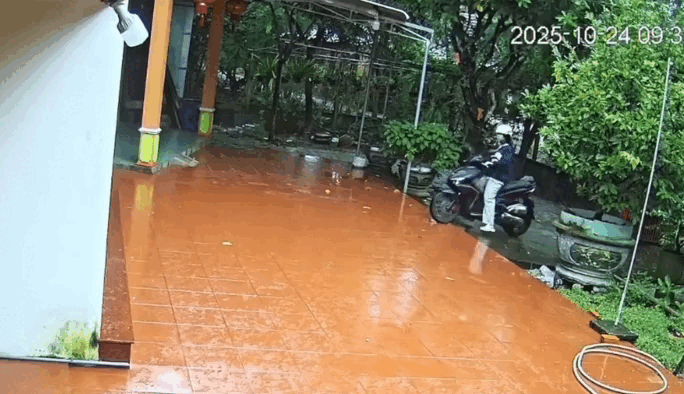 "Sân gạch ướt sau mưa rất trơn. Dù đi bộ hay đi xe, mọi người đều phải cực kỳ cẩn thận."