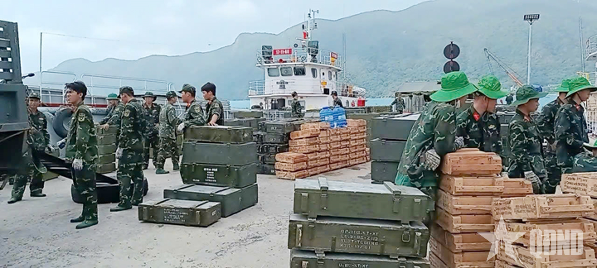 Cán bộ, nhân viên Cục Hậu cần - Kỹ thuật, Quân khu 7 vận chuyển vũ khí đến các đơn vị thực hiện nhiệm vụ.