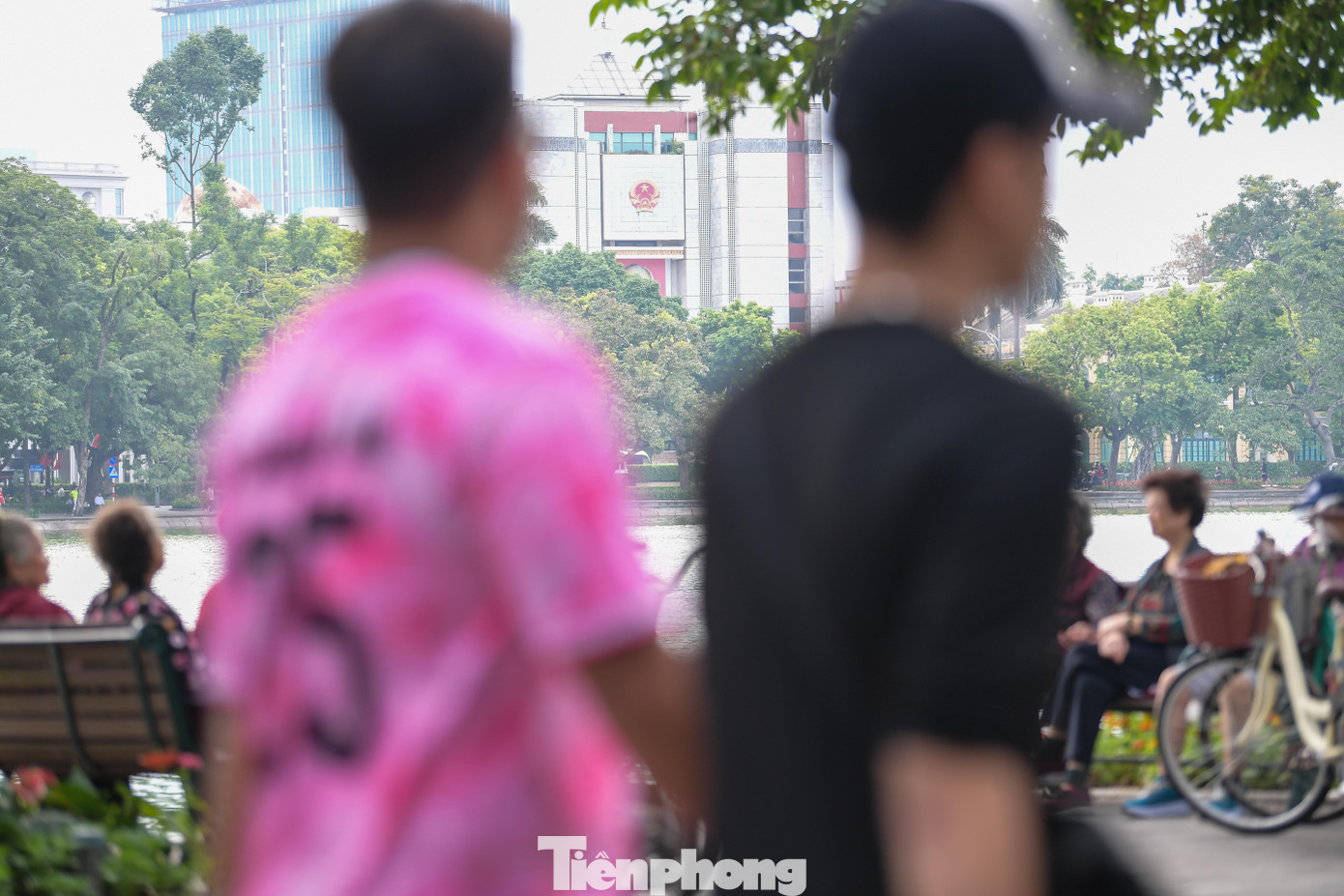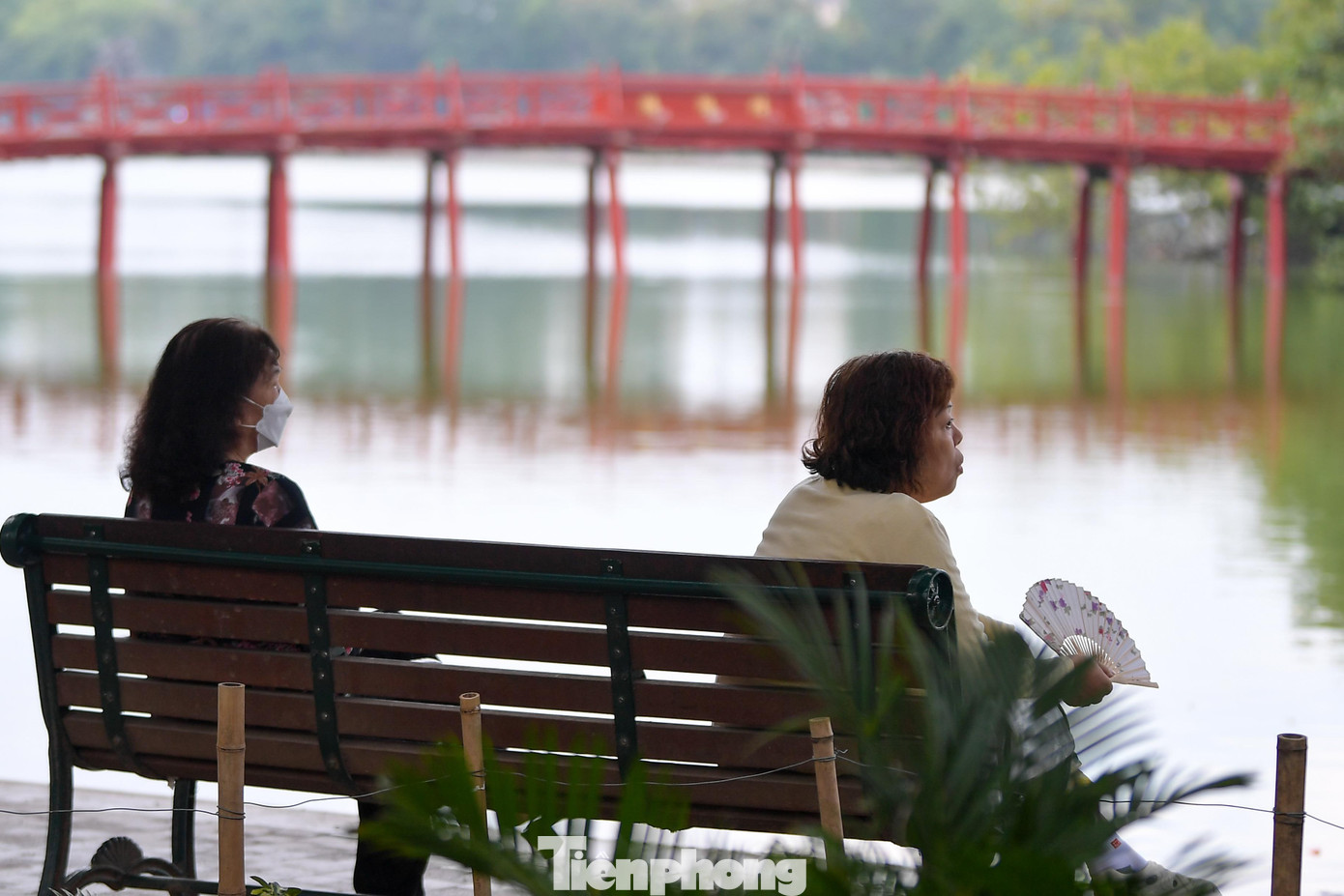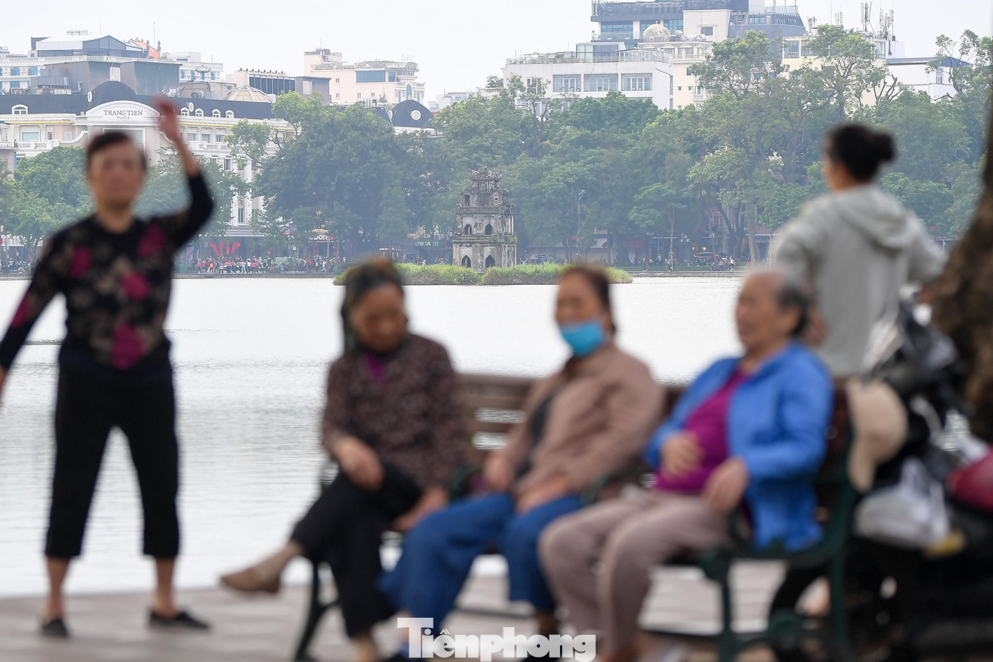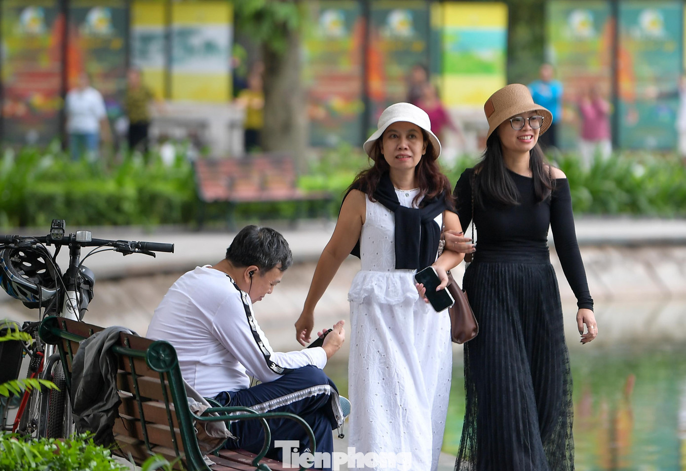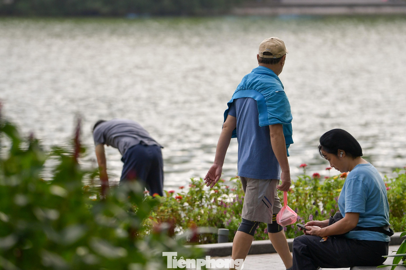 Những nhóm người trung niên tập thể dục theo tiếng nhạc nhẹ. Một cụ bà rót chén trà, mời bạn tập vài ngụm. Tiếng cười rộn vang xen lẫn tiếng giày chạm đất, tiếng chim ríu rít trên cành. Dù là sáng đầu tuần, không khí nơi đây vẫn thong thả, khác hẳn sự hối hả chỉ cách đó vài con phố.