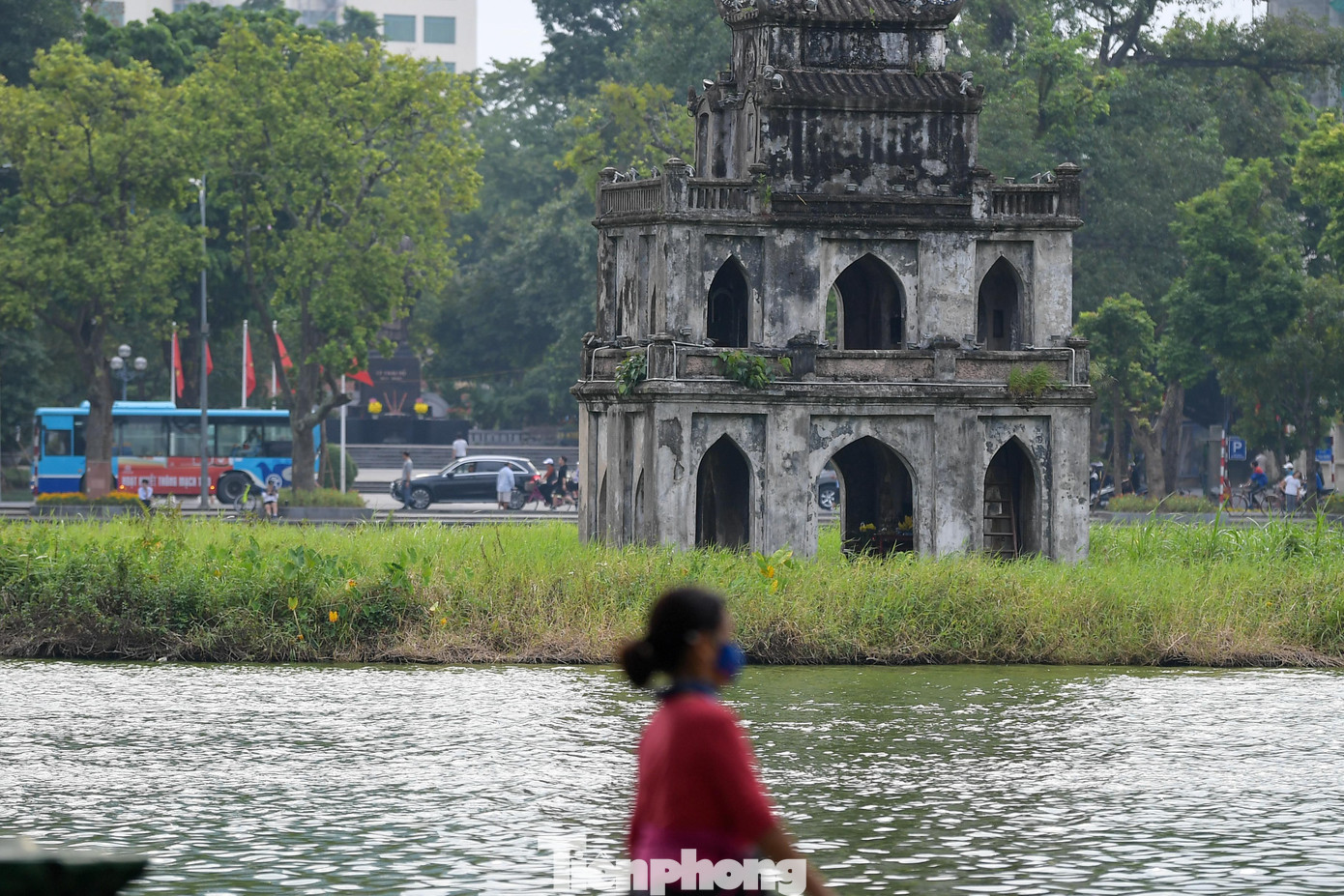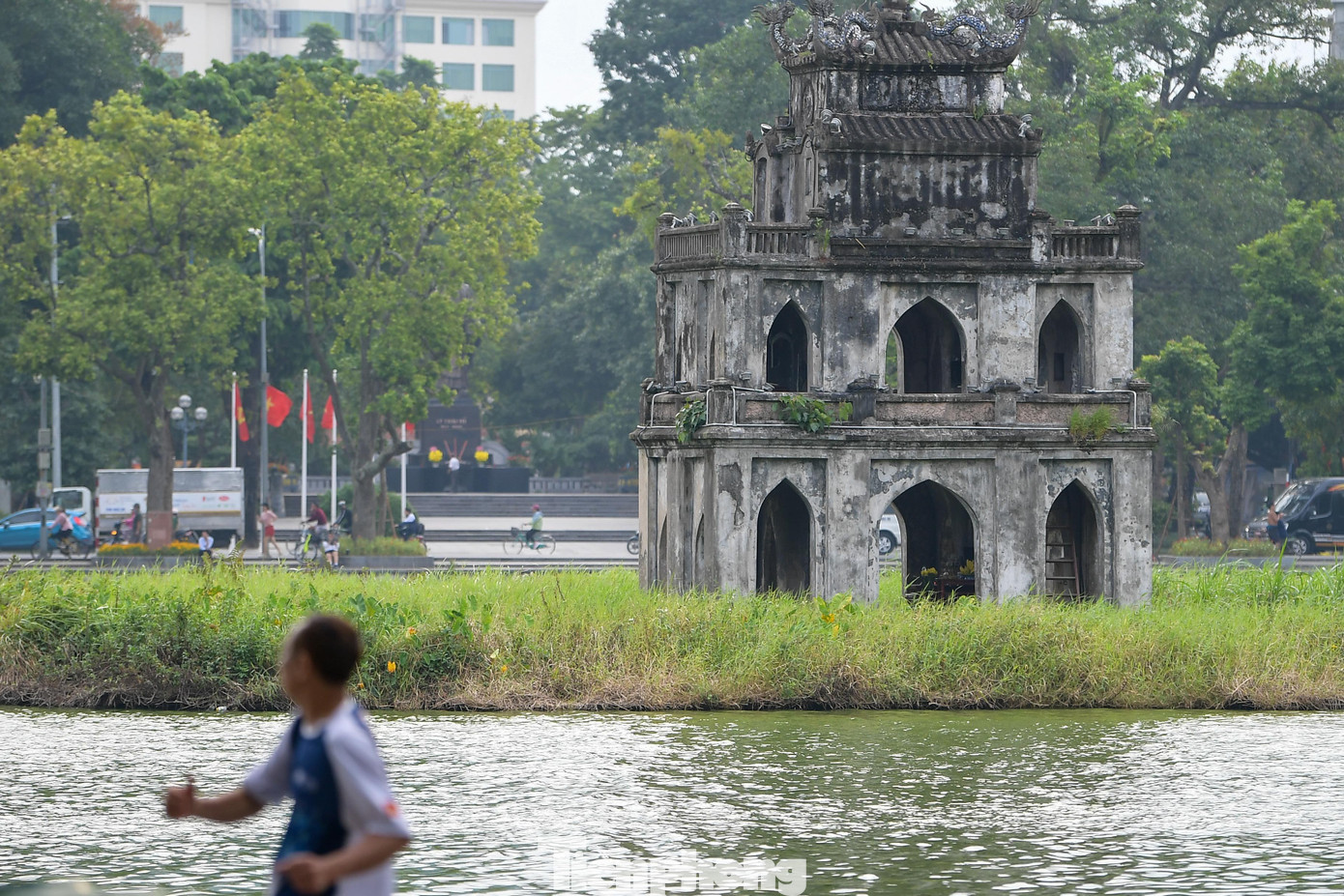 Từ tờ mờ sáng, quanh Hồ Gươm đã lác đác người đi bộ, tập dưỡng sinh, hít thở khí trời Thu. Mặt nước còn phủ sương, hàng cây chuyển màu, lá rụng bên lối đi. Ánh bình minh dần xuất hiện, rọi qua Tháp Rùa, phản chiếu những tia sáng đầu ngày lên khuôn mặt người già, người trẻ, những người yêu nhịp sống chậm của Thủ đô.