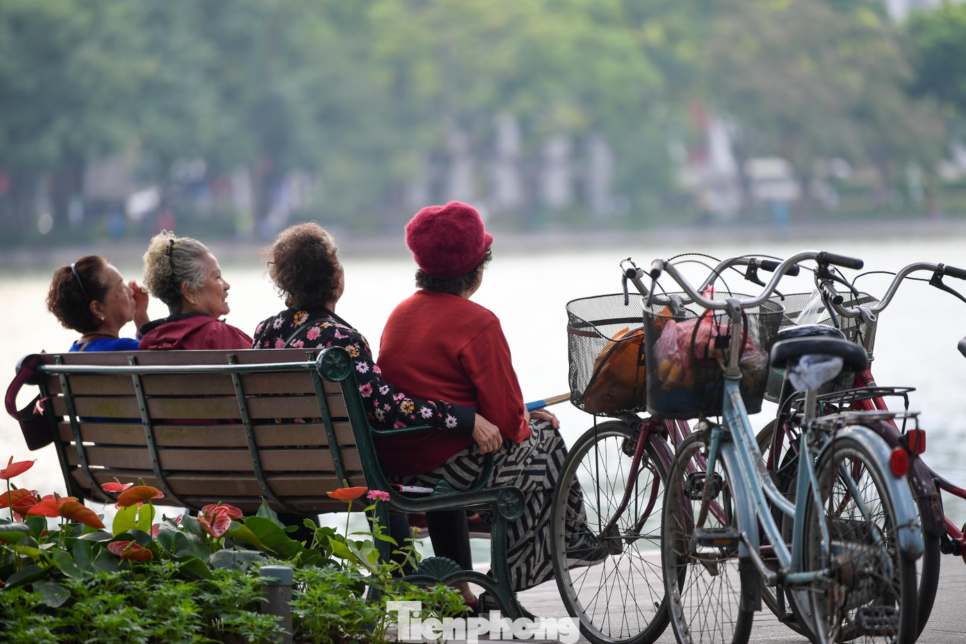 Trên một chiếc ghế đá cạnh cầu Thê Húc, hai cụ ông ngồi kể câu chuyện ngày mới. Họ đã giữ thói quen ấy gần hai mươi năm, bất kể mùa nào. “Chúng tôi gọi đây là ‘cuộc hẹn sáng’. Ra hồ để thấy mình còn khỏe, còn gặp được nhau”, cụ Nguyễn Văn Minh (67 tuổi), kể.