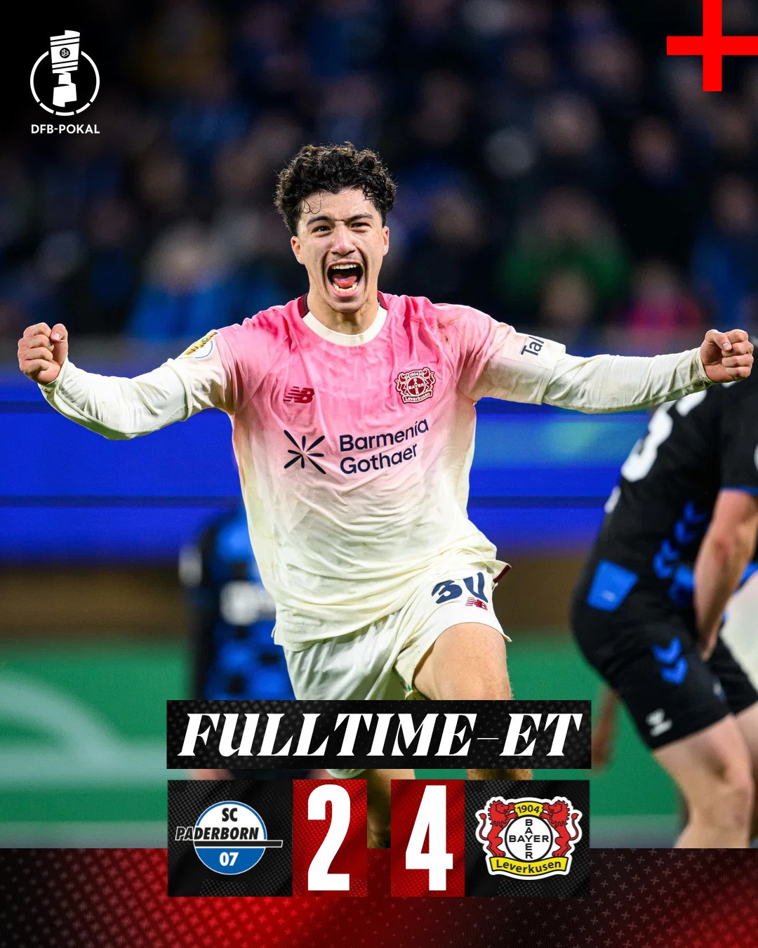 Nhưng Paderborn không bỏ cuộc. Họ gỡ hòa 1-1 ở phút 90 và thậm chí vượt lên 2-1 đầu hiệp phụ, khiến Leverkusen đứng trước bờ vực bị loại.