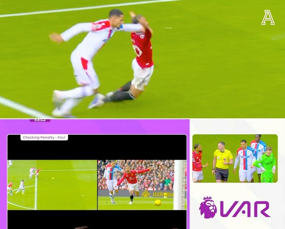 Cầu thủ mở tỷ số cho Crystal Palace, Maxence Lacroix phạm lỗi với số 10 của MU trong vòng cấm và trọng tài chính quyết định rút thẻ đỏ trực tiếp, truất quyền thi đấu của cầu thủ này, sau khi xem lại VAR.