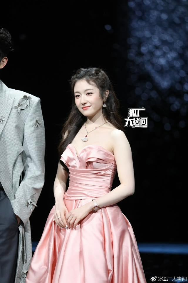 Trong khi Lý Lan Địch dễ thương trong bộ váy hồng thì Quan Hiểu Đồng chững chạc trong mái tóc xoăn.