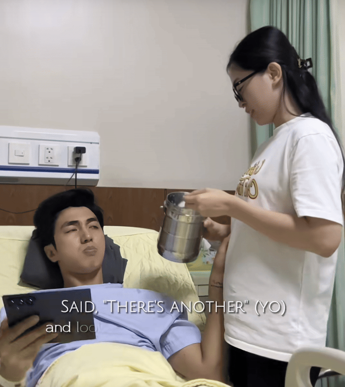 Phương Nga lộ vòng 2 bất thường trong video chăm chồng tại bệnh viện. Ảnh chụp màn hình