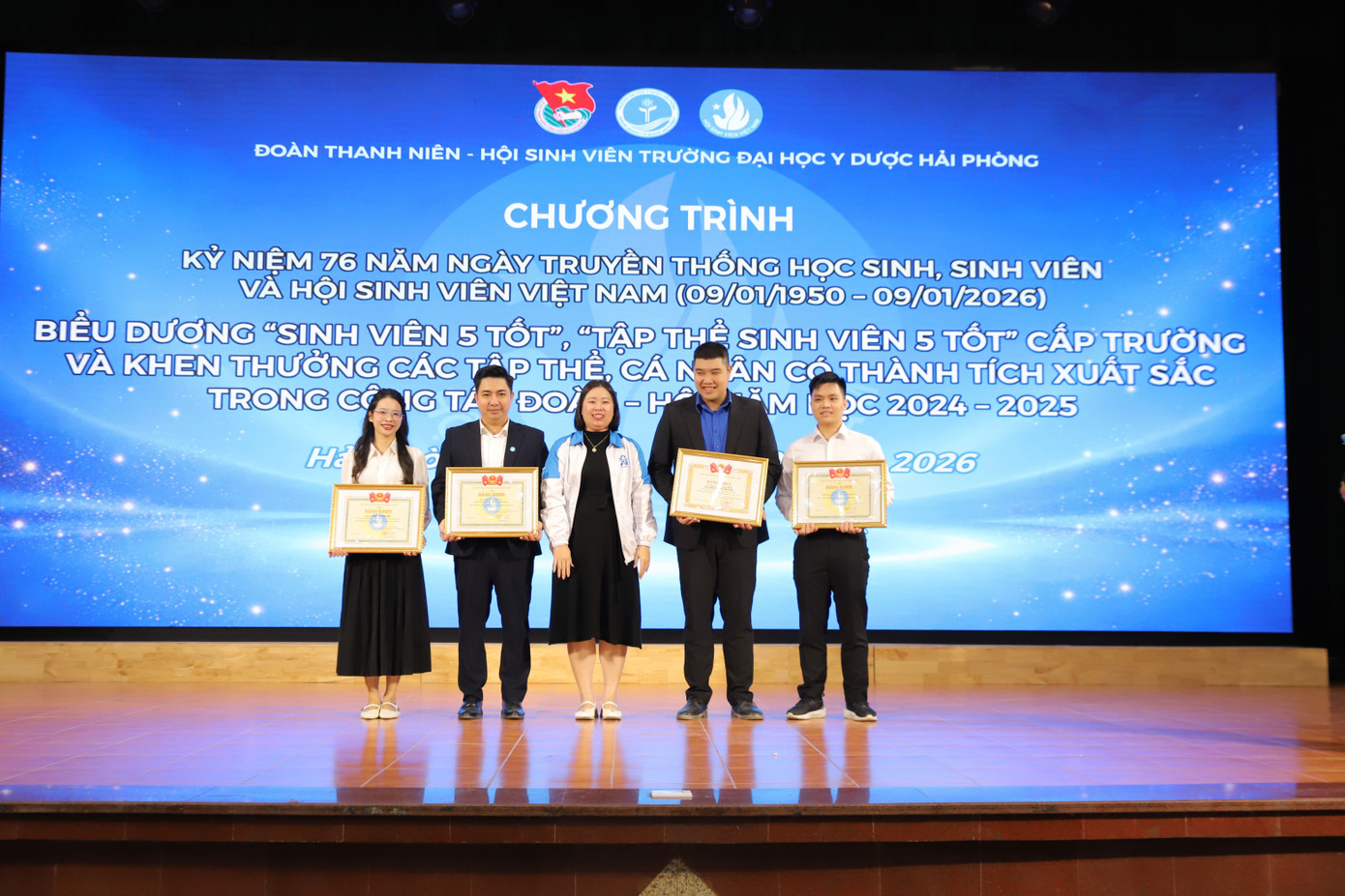 My My (ngoài cùng bên trái) nhận Bằng khen của Ban Chấp hành Trung ương Hội Sinh viên Việt Nam với thành tích xuất sắc trong công tác Hội.
