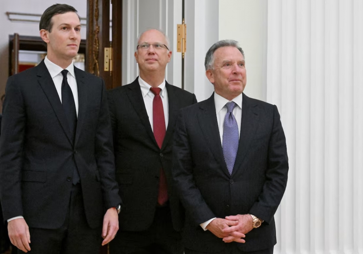 Ông Jared Kushner (ngoài cùng, trái) và ông Steve Witkoff (ngoài cùng, phải). Ảnh: Reuters