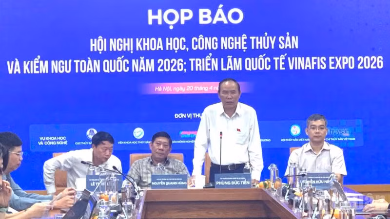 Thứ trưởng Phùng Đức Tiến chủ trì Họp báo thông tin về Hội nghị khoa học, công nghệ thủy sản và kiểm ngư toàn quốc năm 2026.
