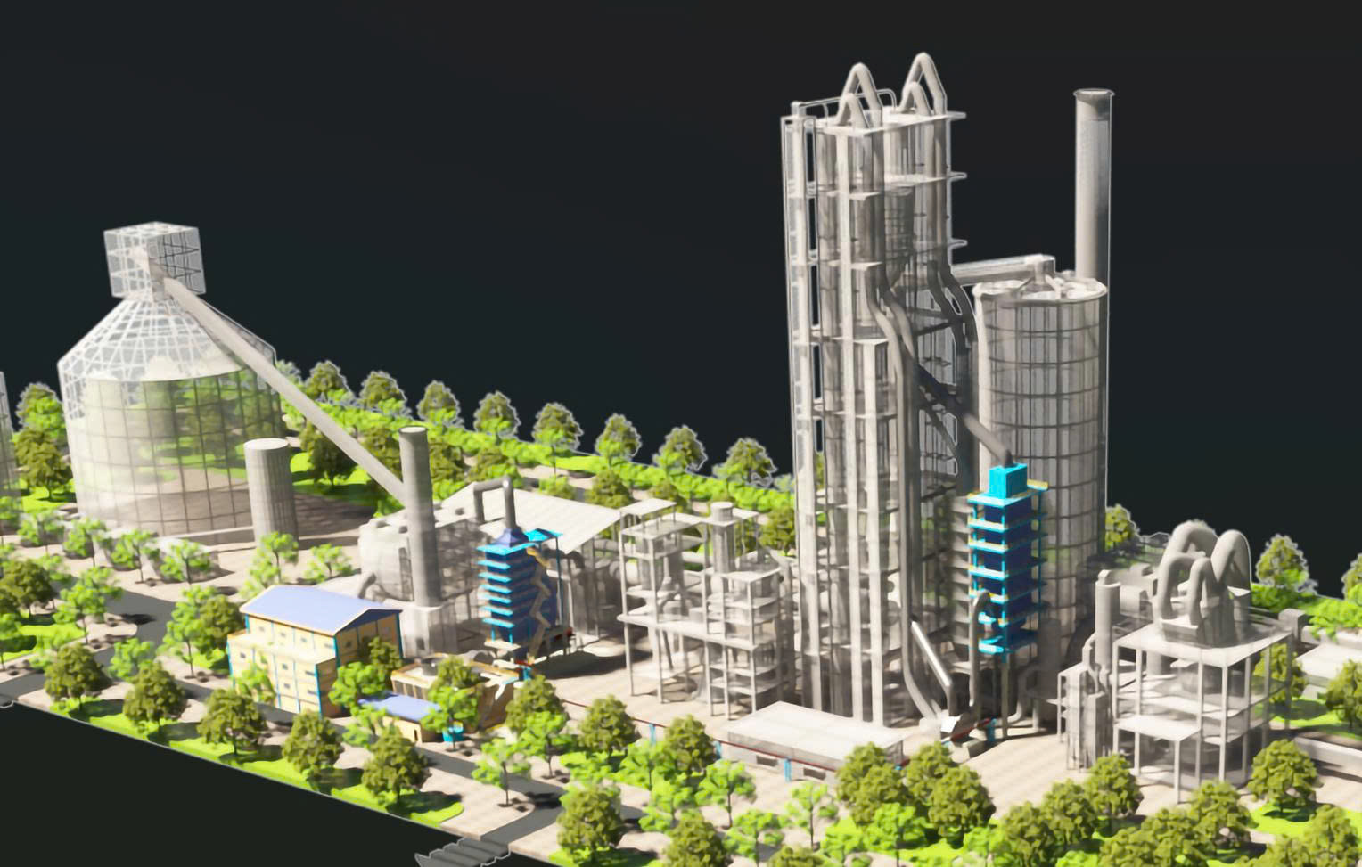 Vị trí của dự án tận dụng nhiệt khí thải để phát điện (màu xanh) trong hệ thống dây chuyền sản xuất Nhà máy xi măng Bình Phước của Vicem Hà Tiên.