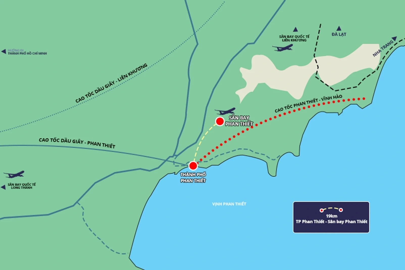 Dự án sân bay Phan Thiết được UBND tỉnh Bình Thuận cũ phê duyệt với tổng mức đầu tư hơn 1.693 tỉ đồng, quy mô cấp 4C, thuộc nhóm dự án A và triển khai theo hình thức BOT.