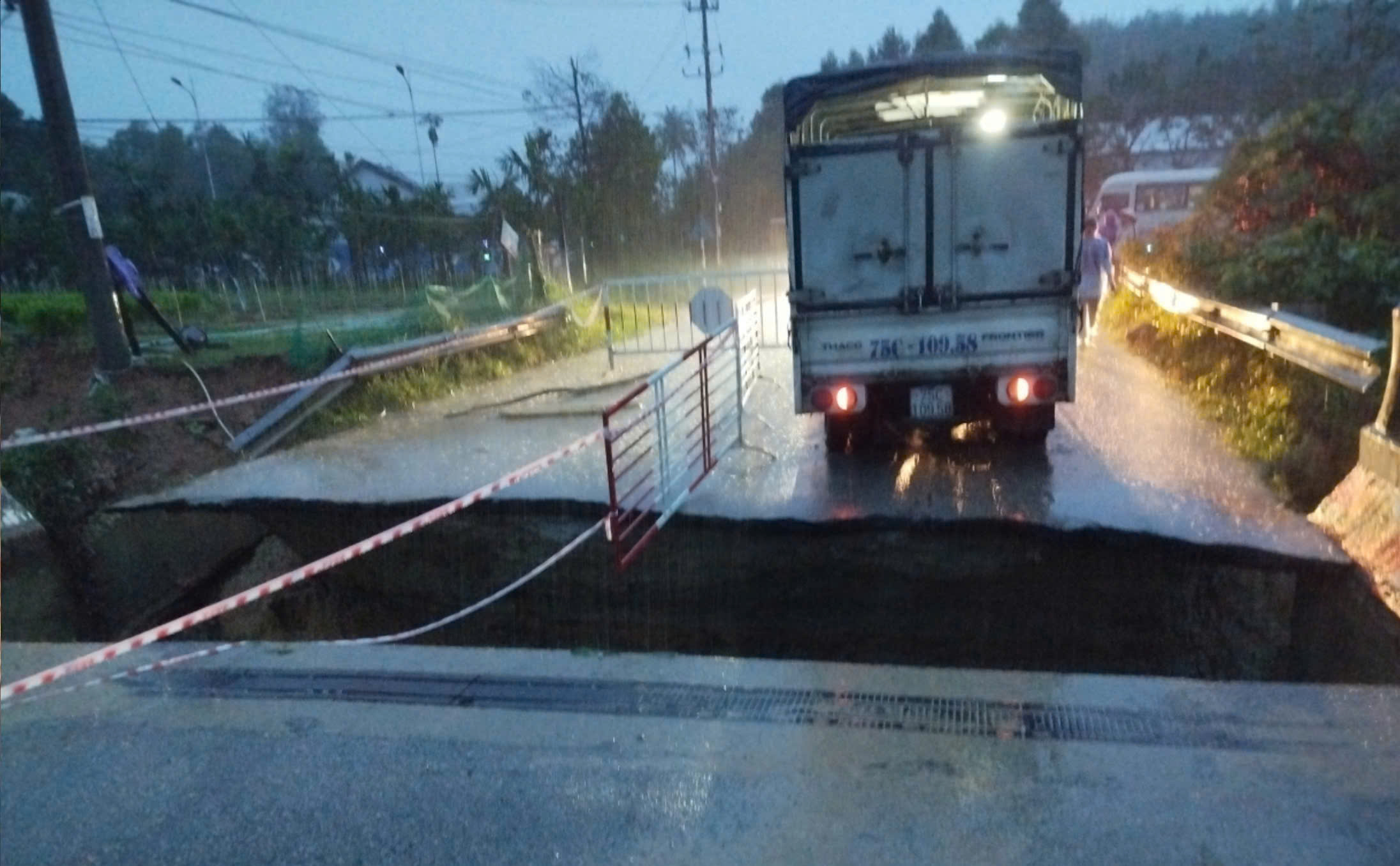 Theo thông tin ban đầu, khoảng 5h30 cùng ngày, mưa lớn ở thượng nguồn khiến nước chảy xiết, cầu Phú Mậu xuất hiện hư hỏng, sụp mố cầu.