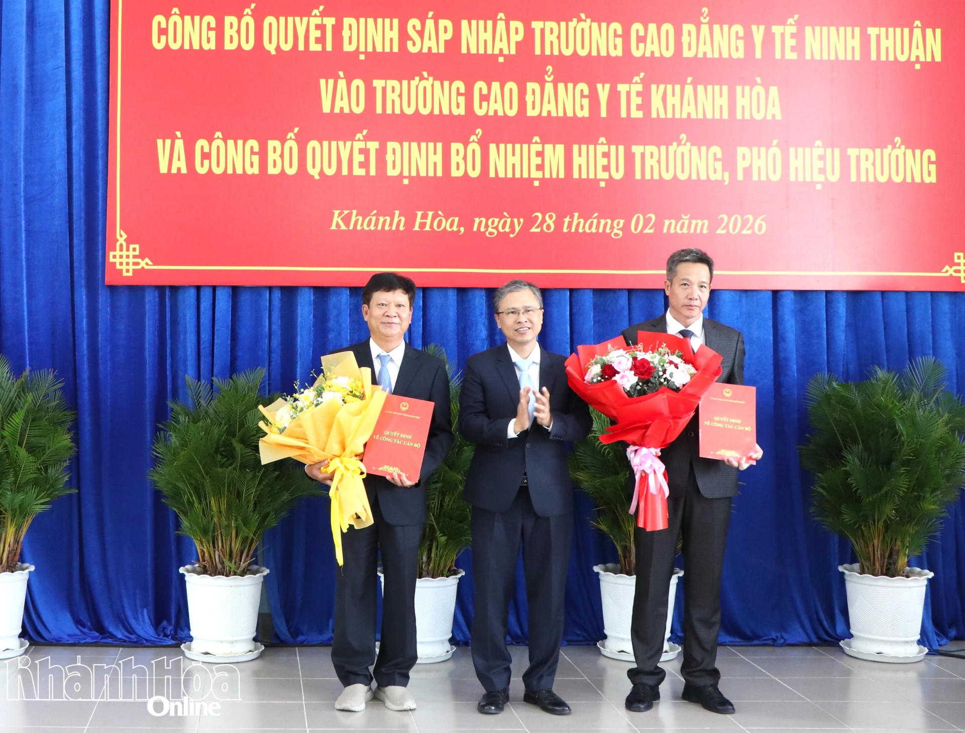 Sở Nội vụ cũng công bố các quyết định của Chủ tịch UBND tỉnh Khánh Hòa về việc bổ nhiệm hiệu trưởng, phó hiệu trưởng Trường Cao đẳng Y tế Khánh Hòa sau sáp nhập. Theo đó, Chủ tịch UBND tỉnh Khánh Hòa bổ nhiệm ông Trần Ngọc Thành - Hiệu trưởng Trường Cao đẳng Y tế Khánh Hòa (trước sáp nhập) giữ chức vụ Hiệu trưởng Trường Cao đẳng Y tế Khánh Hòa (sau sáp nhập); bổ nhiệm ông Nguyễn Việt Anh - Phó Hiệu trưởng Trường Cao đẳng Y tế Khánh Hòa (trước sáp nhập), được biệt phái giữ chức vụ Đảng ủy viên, Phó Chủ tịch UBND phường Hòa Thắng giữ chức vụ Phó Hiệu trưởng Trường Cao đẳng Y tế Khánh Hòa (sau sáp nhập).