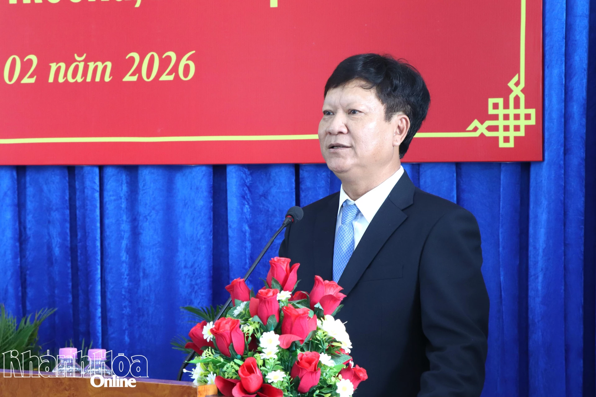 Ông Trần Ngọc Thành - Hiệu trưởng Trường Cao đẳng Y tế Khánh Hòa phát biểu nhận nhiệm vụ.