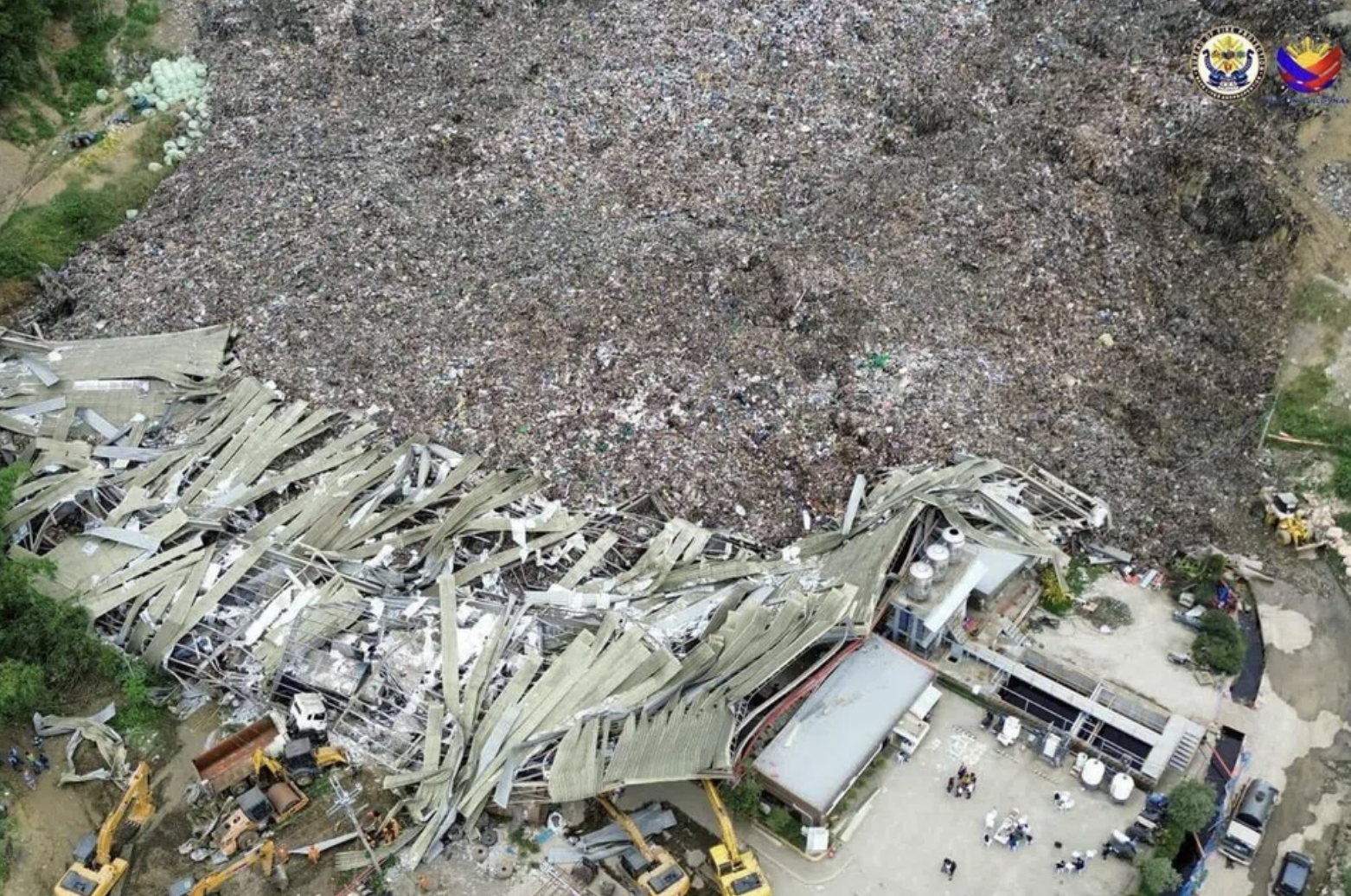 Hiện trường vụ sập núi rác khổng lồ nhìn từ trên cao. Ảnh: Reuters.