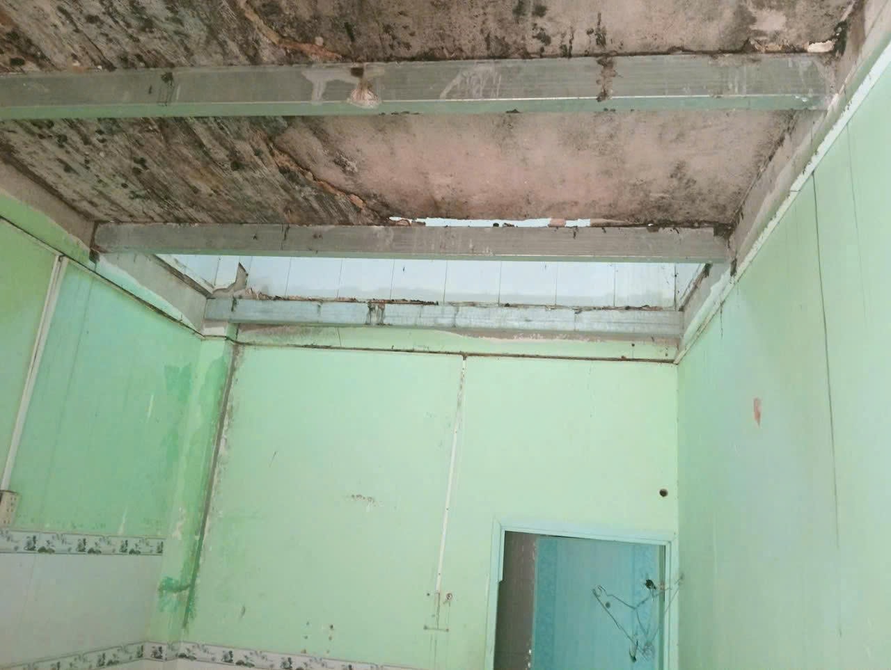 Ghi nhận tại hiện trường cho thấy, phần gác lửng được thiết kế với các thanh đà ngang bằng sắt làm kết cấu chịu lực. Các tấm bê tông được đặt gác trực tiếp lên khung đà sắt này để tạo mặt sàn. Khi xảy ra sự cố, toàn bộ các tấm bê tông bị trượt và rơi xuống phía dưới.