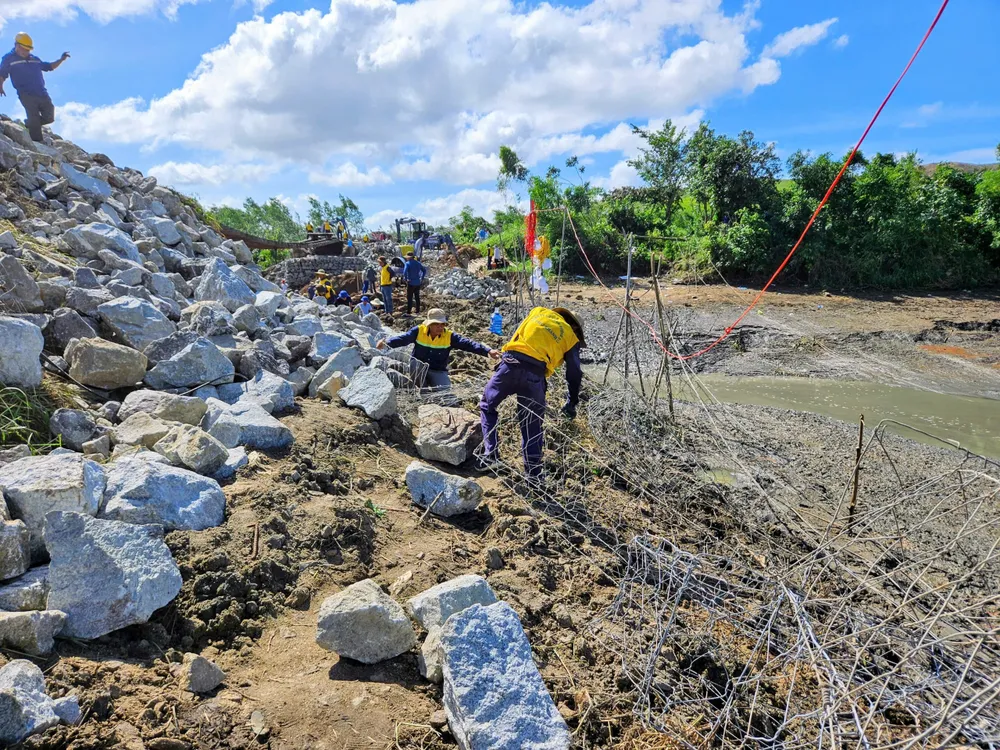 Trước đó, đơn vị cũng đã thi công xong bệ trụ T2, mố tạm phía Nam và vận chuyển các đốt cống thoát nước đến chân công trình. Sau đó tiến hành làm bệ trụ T1, xếp rọ đá mố phía bắc, lắp pale trụ T2, đặt các đốt cống thoát nước.